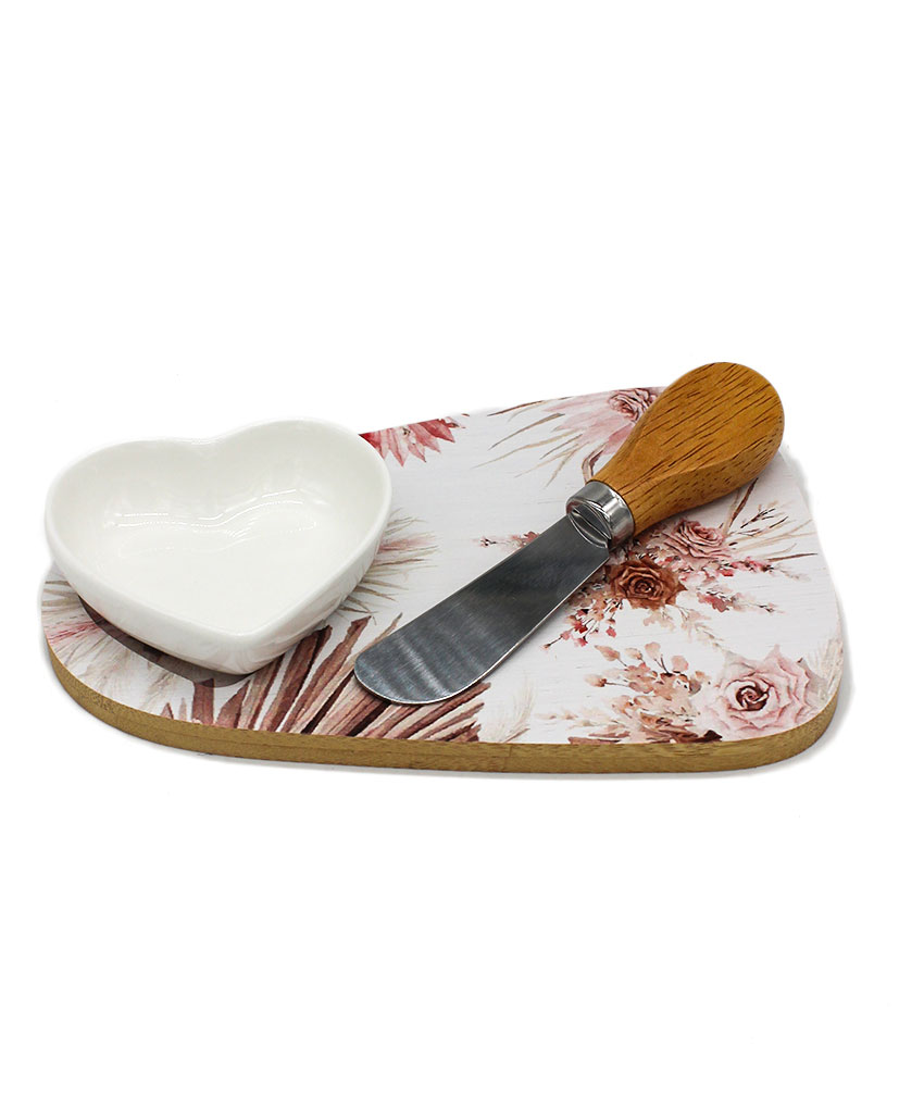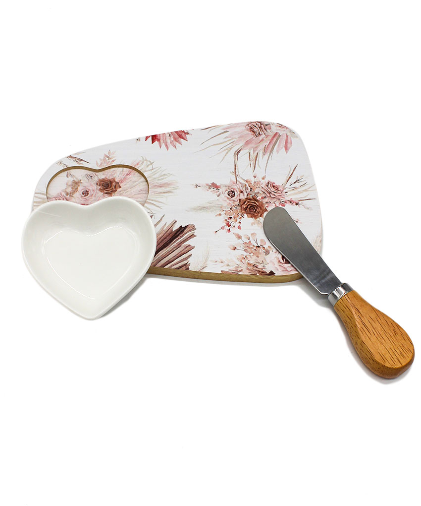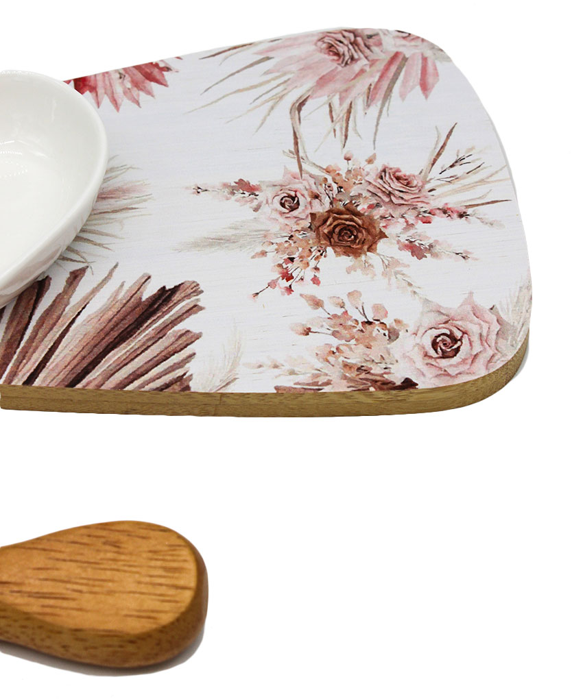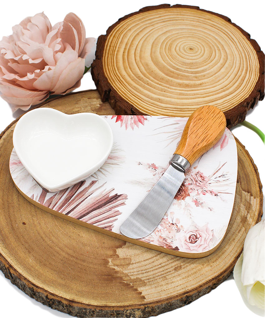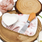 Sorprendi i tuoi invitati con una bomboniera utile che unisce design e praticità! Questo raffinato set tagliere in legno con decoro rose è l’idea perfetta per un regalo elegante e funzionale. Completo di ciotola in porcellana bianca e coltellino taglia formaggio, è ideale per aperitivi e degustazioni gourmet.