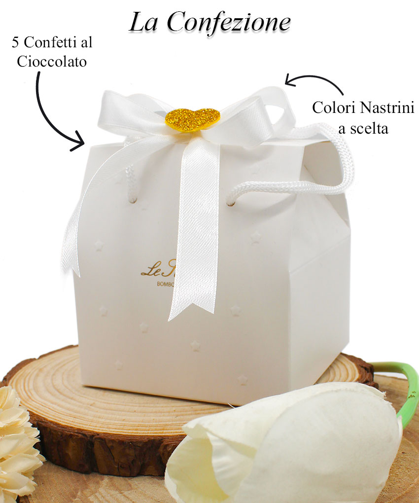 - Possibilità di confezione bomboniera: acquistabile separatamente nei passaggi successivi prima di aggiungere il prodotto al carrello