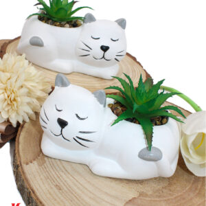 Delizioso vasetto a forma di gattino con piantina finta, un’idea originale e tenera per celebrare i tuoi momenti speciali. Realizzato in porcellana di qualità e curato nei dettagli, si presenta come una bomboniera elegante e raffinata, perfetta per matrimoni, battesimi, comunioni, cresime, lauree e compleanni.