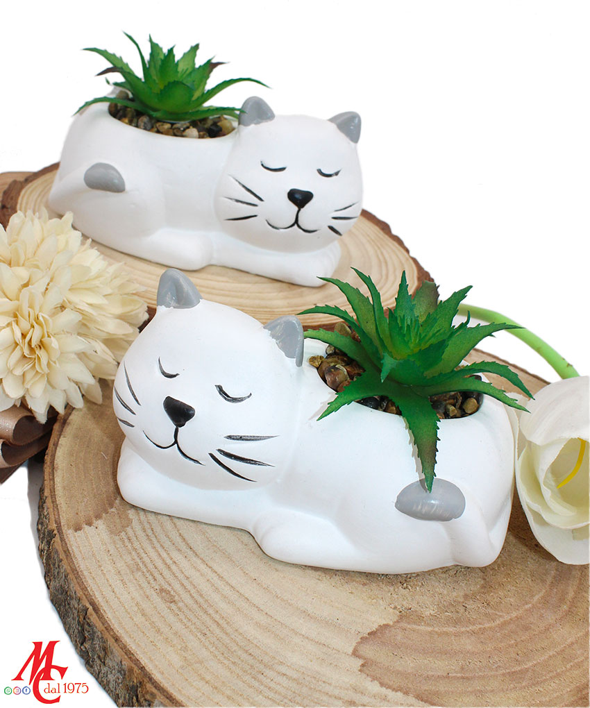 - Tipologia: Bomboniera vasetto gattino con piantina finta