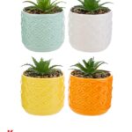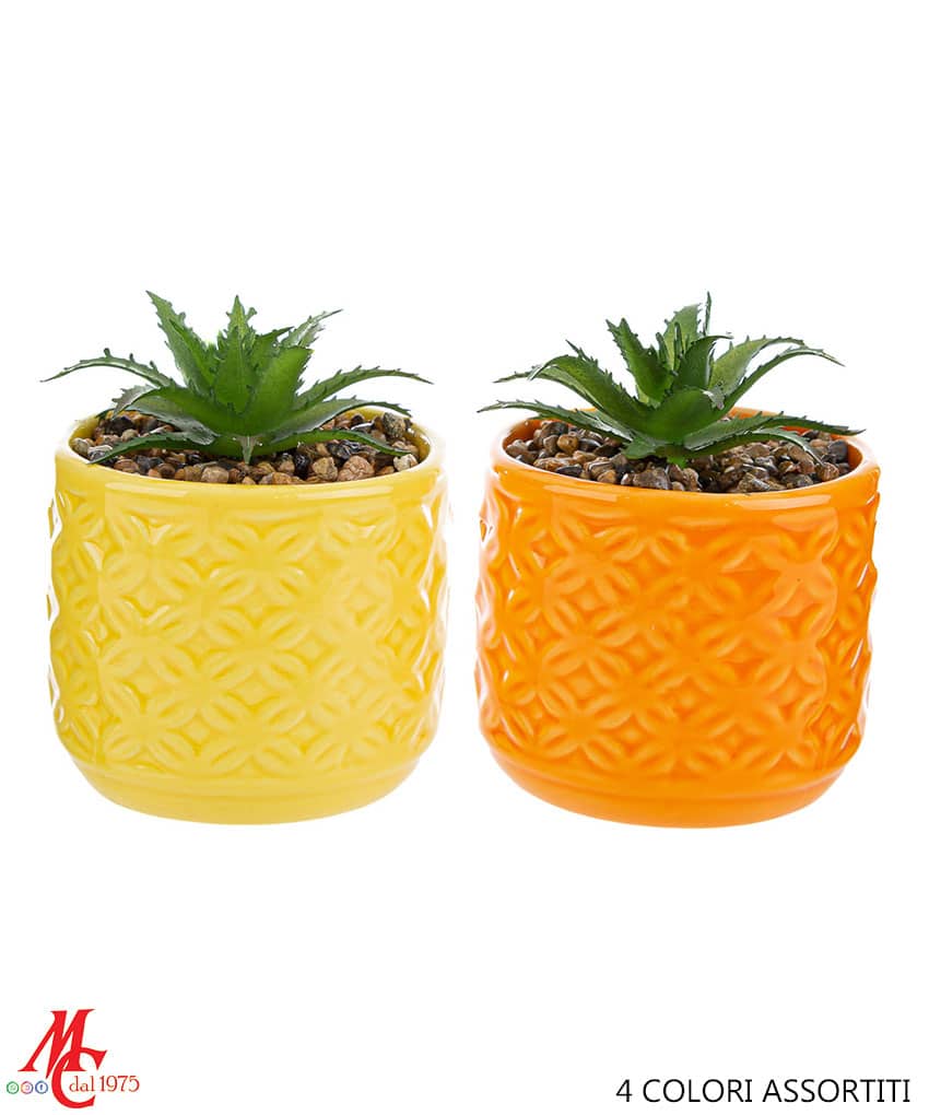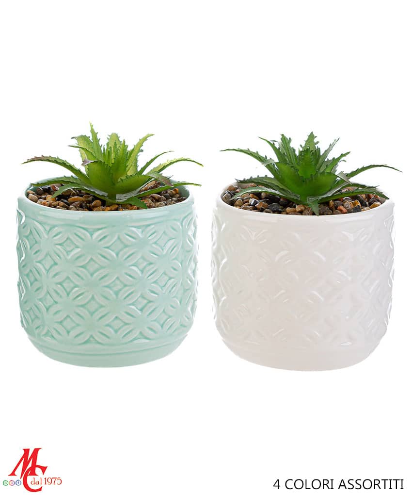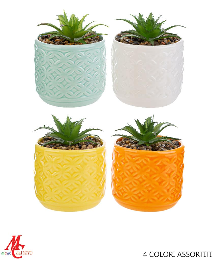 Bomboniera Vasetto Piantina Artificiale – 4 Colori Assortiti – Misure: d8,5xh7 cm (Confezione Non Inclusa)
