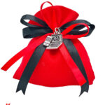 Sacchetto: Rosso in Tessuto con Nastrini doppio Raso Bianchi e Rossi – Solo se si sceglie la voce con confezione