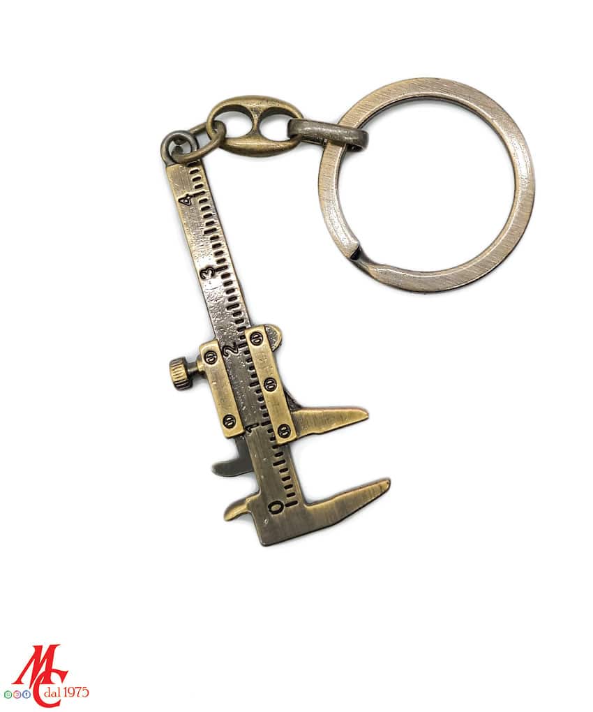 Strumento indispensabile per i laureati in Ingegneria o Architettura, il ciondolo Calibro diventa gadget senza tempo nella versione Retrò in metallo bronzato. Tarato nei minimi particolari, il ciondolo Calibro viene prodotto per pressofusione e successivamente antichizzato per garantirne un effetto retrò, da abbinare a portachiavi, moschettone o nappina.