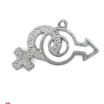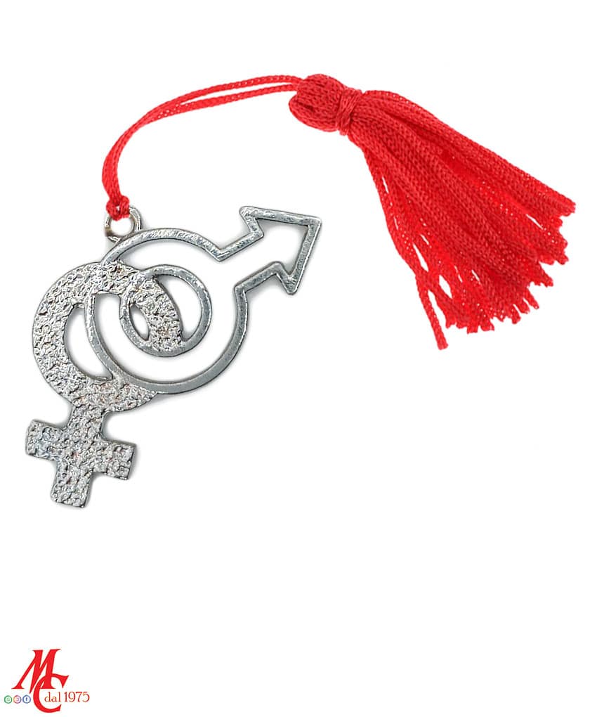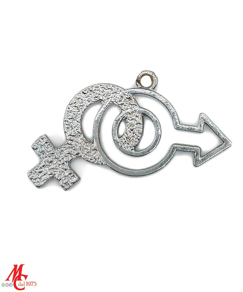 Bomboniera Ciondolo Lui e Lei Uniti simboli in metallo satinato linea Romance