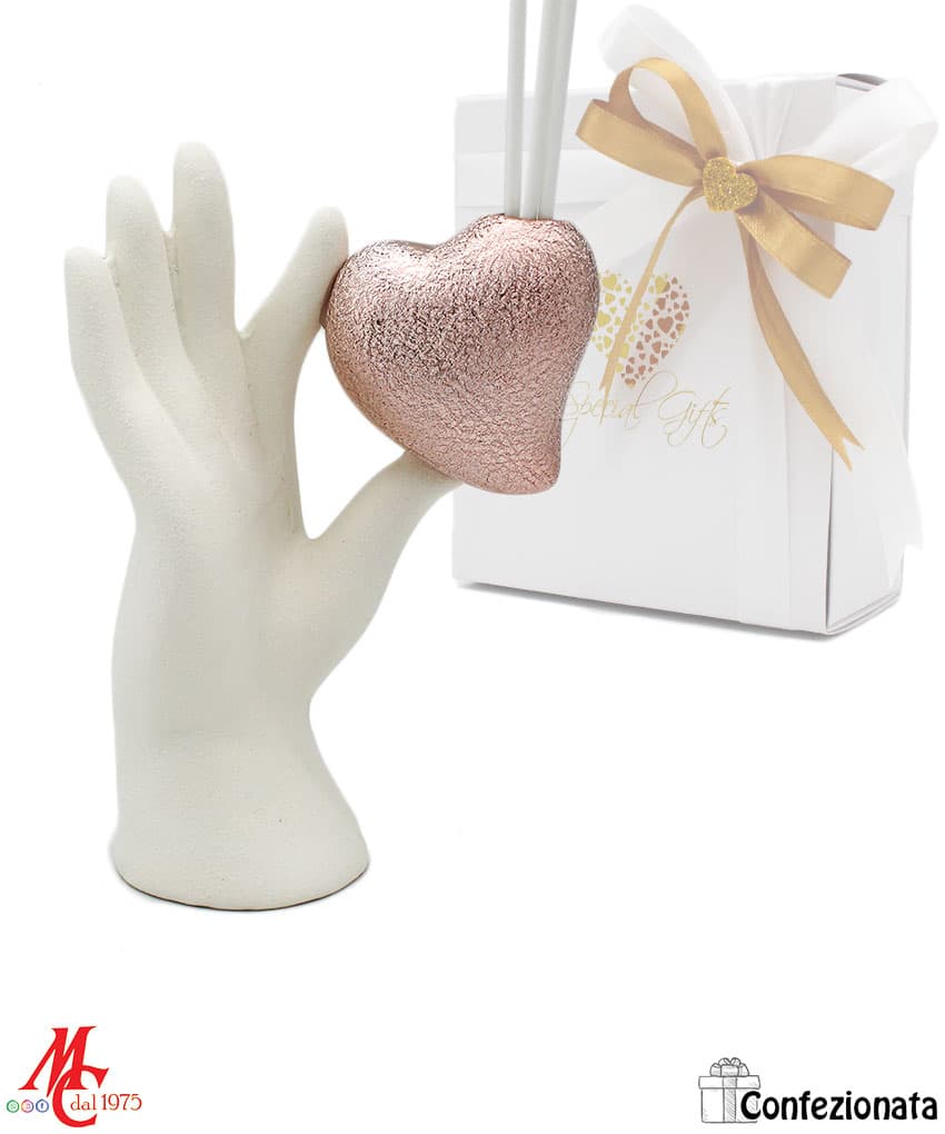 Bomboniera Profumatore Mano Con Cuore Rosa Gold
