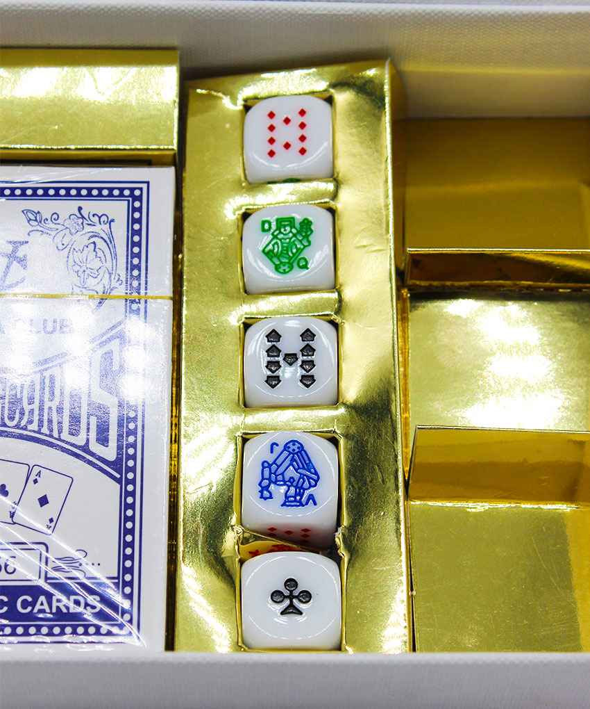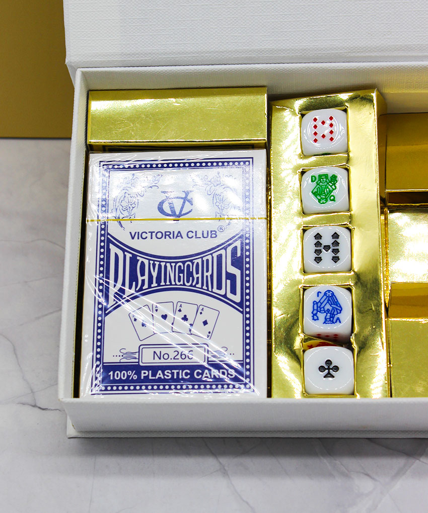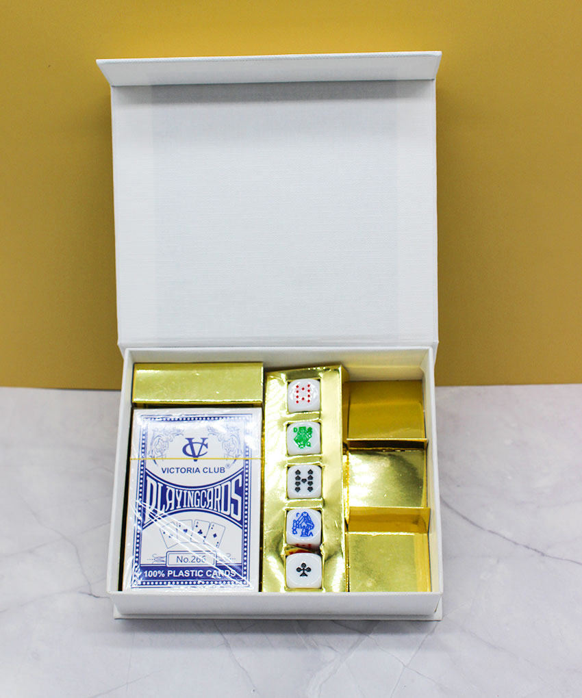 BOX DEGUSTAZIONE CON CARTE E DADI 15x12x4 cm – Bomboniera Completa di Confezione