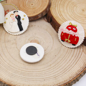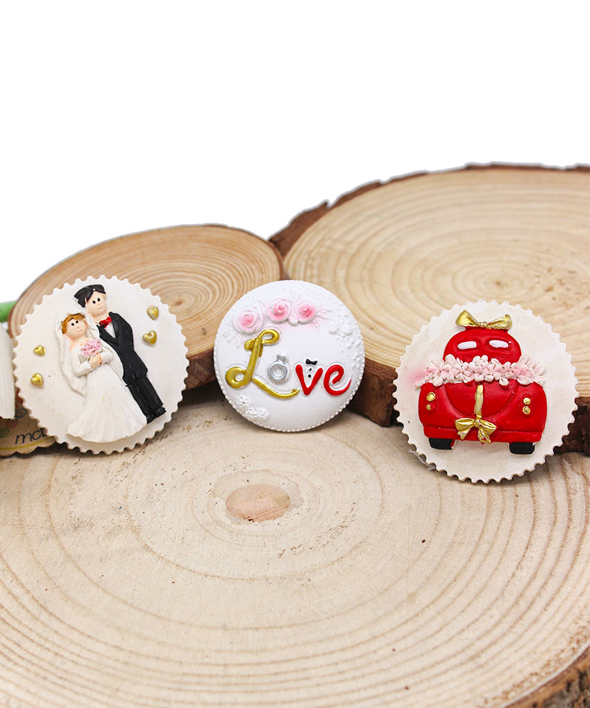 Bustina Sposi con magnete tondo in resina, disponibile in 3 modelli assortiti da 5 cm. Perfetta come bomboniera per matrimonio. La confezione non è inclusa nel prezzo e può essere aggiunta nei passaggi successivi prima di completare l’ordine.