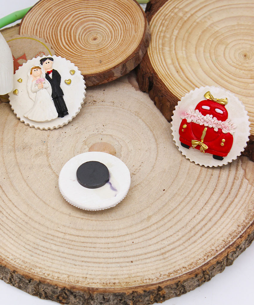 È un’idea ideale per chi desidera un dono semplice ma curato, che gli invitati potranno conservare come calamita decorativa.