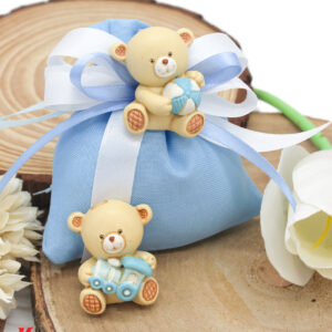 Bomboniera Calamita Orsetto in Resina Celeste – 2 Assortimenti – 3,5×4,5 cm