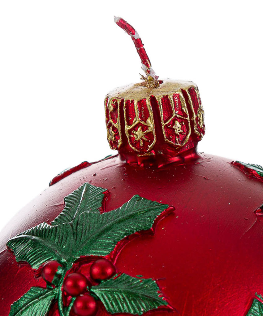 Candela sfera natalizia rossa diam. 9 cm