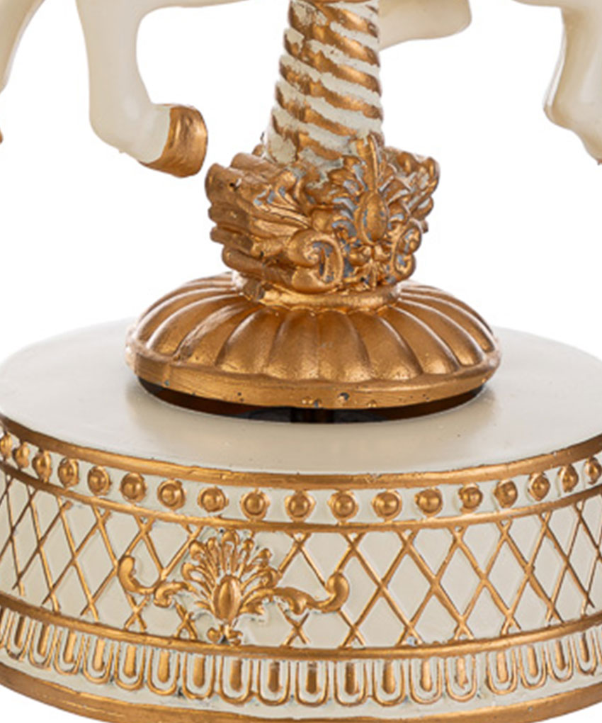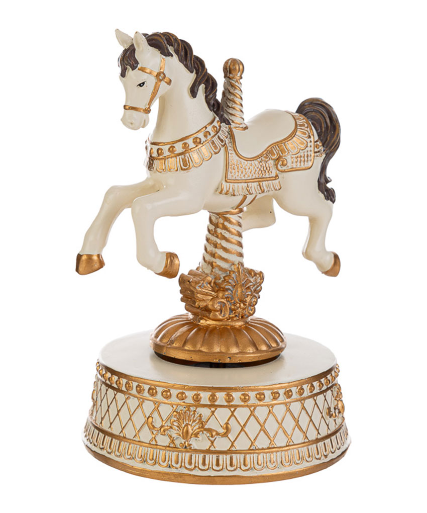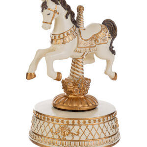Un’elegante fusione tra tradizione e incanto natalizio: il carillon cavalluccio natalizio in resina panna conquista con la sua raffinatezza e il suo fascino senza tempo.