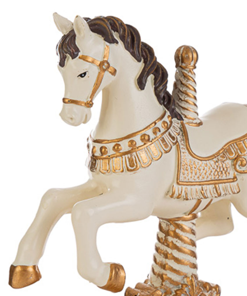 Carillon cavalluccio natalizio in resina panna 12×11×h.17 cm