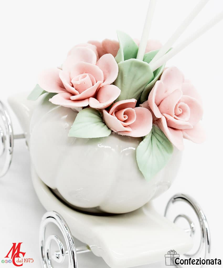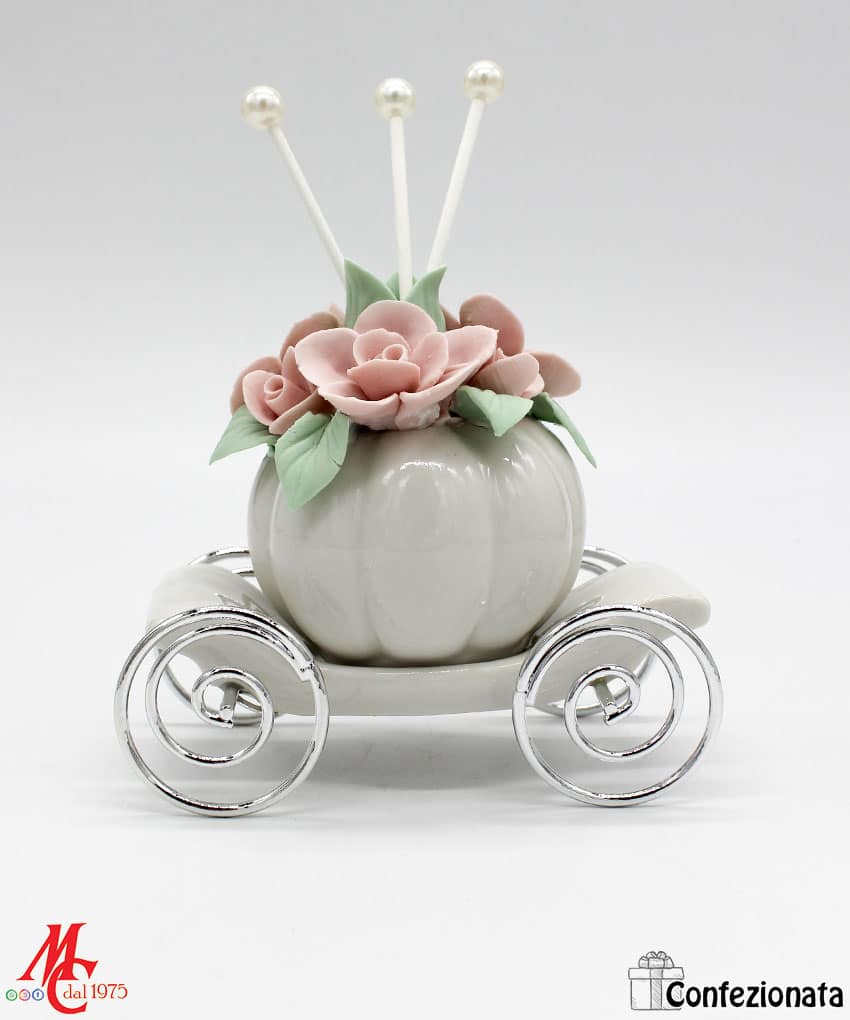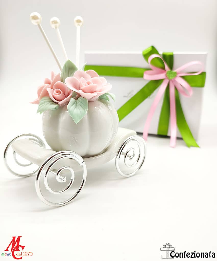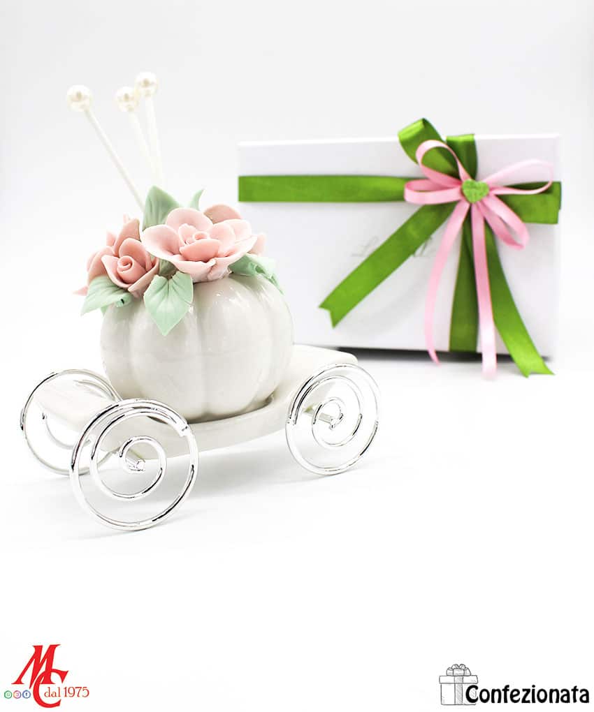 Bomboniera Completa di Confezione – Carrozza Profumatore Fiore Porcellana
