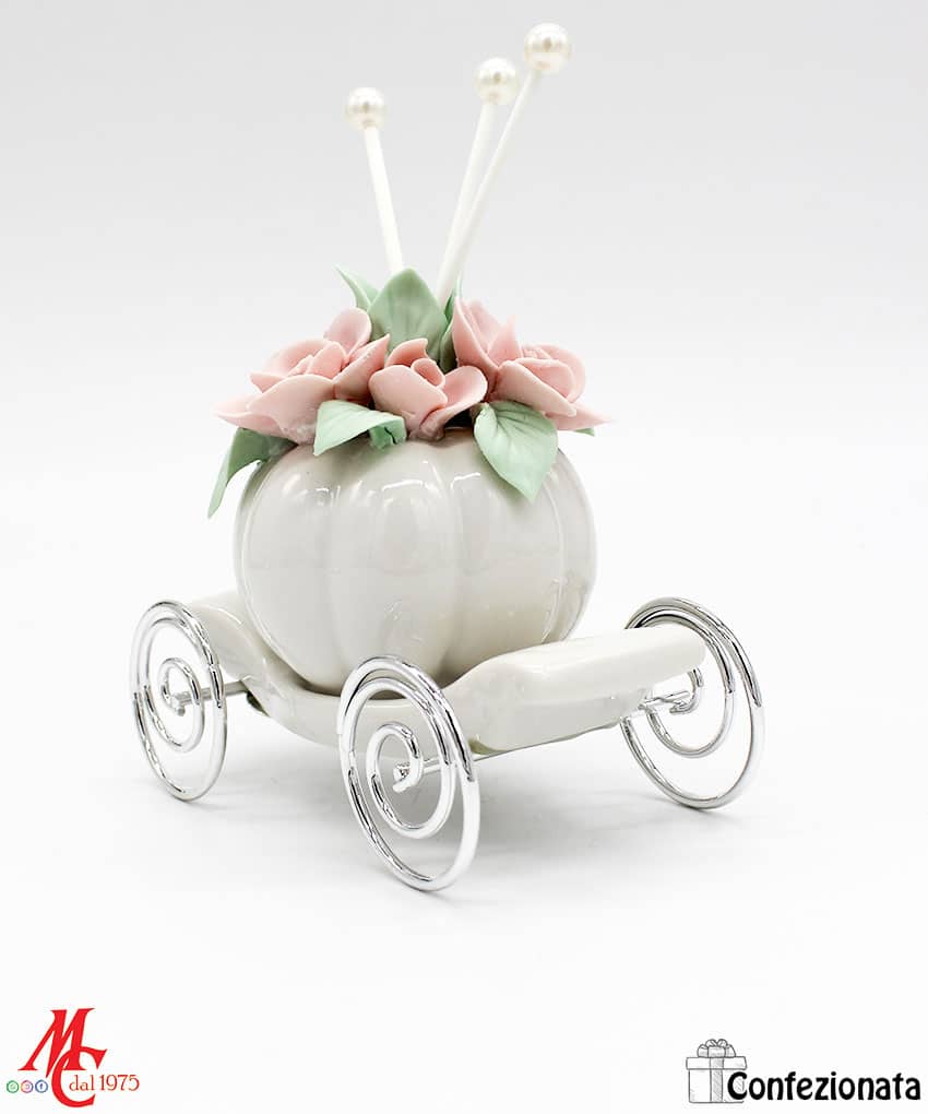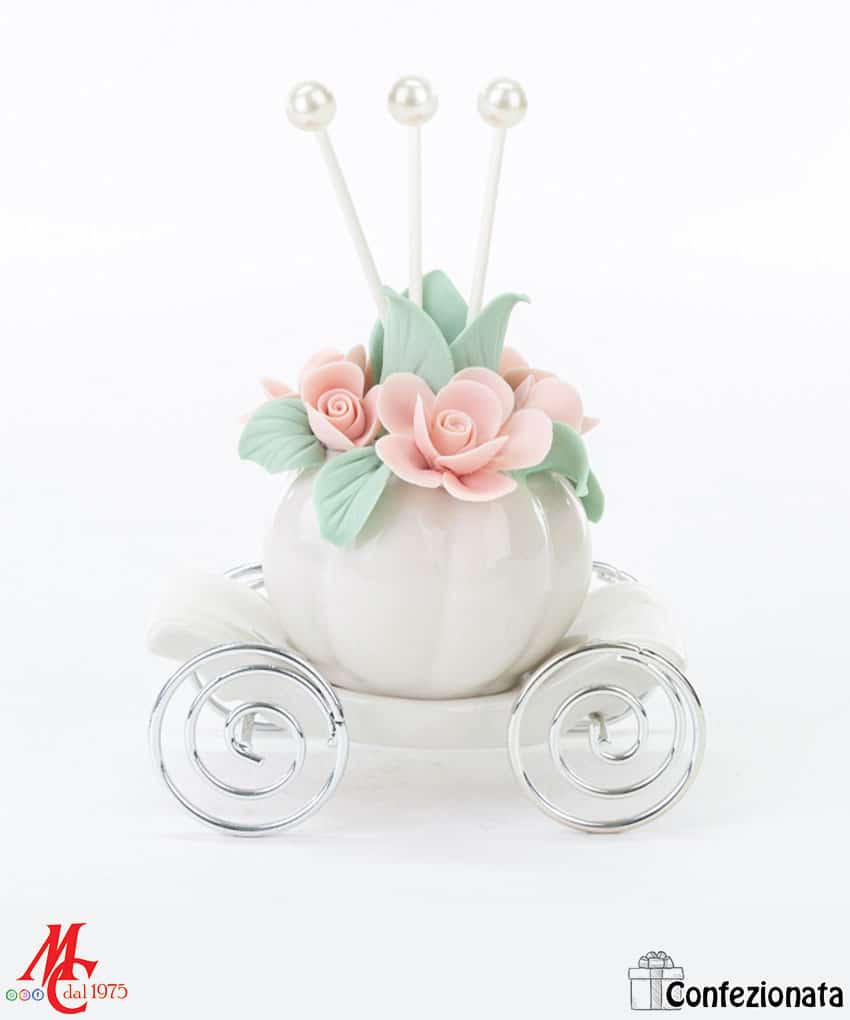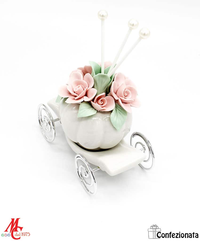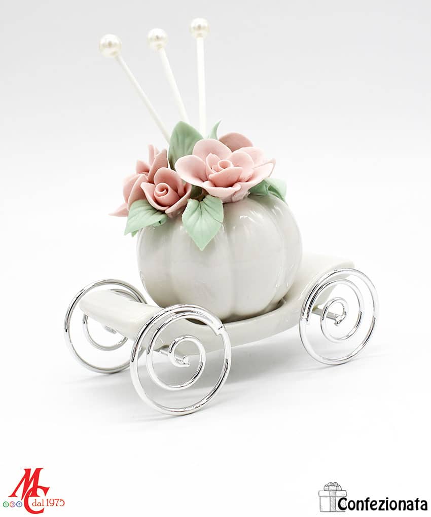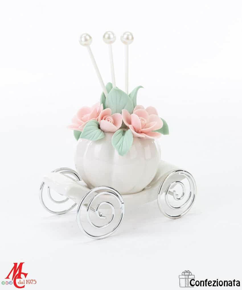 Bomboniera Completa di Confezione – Carrozza Profumatore Fiore Porcellana