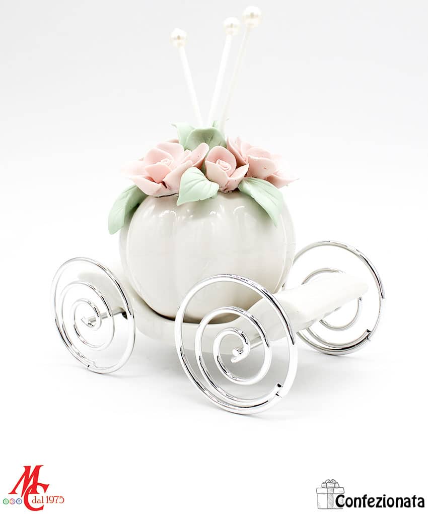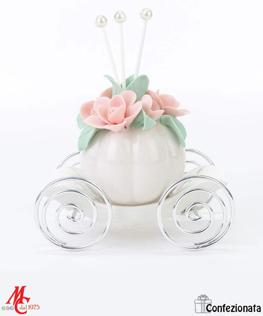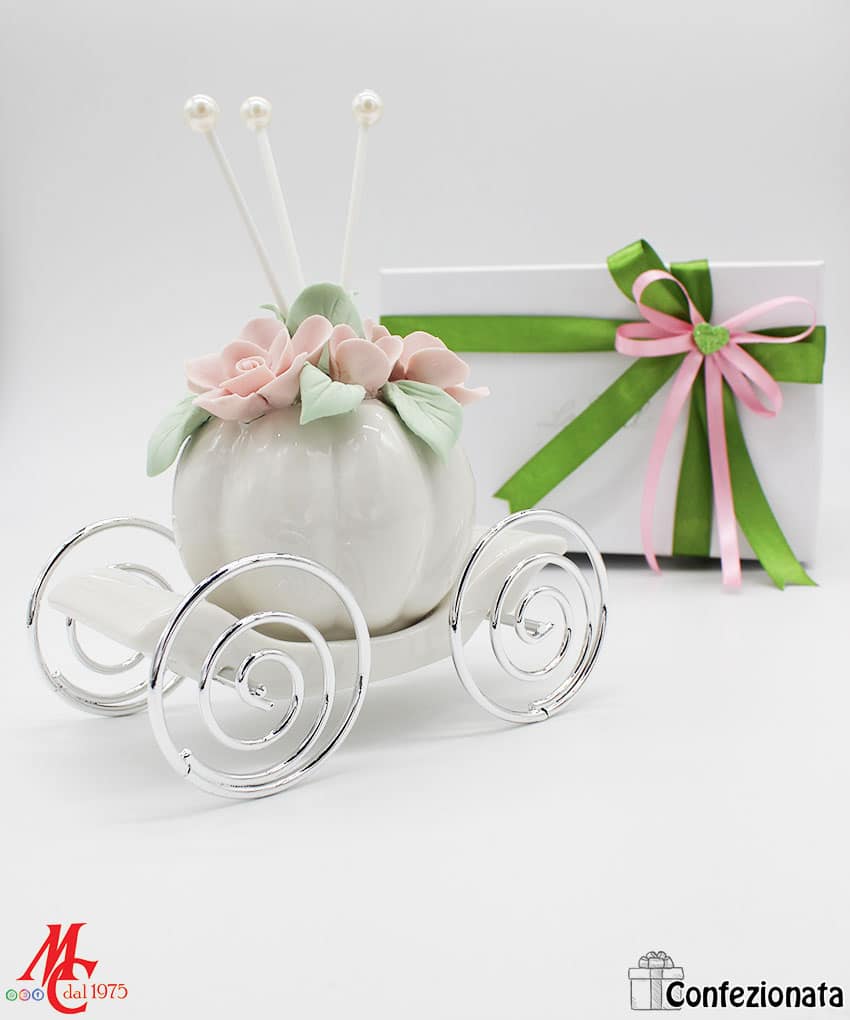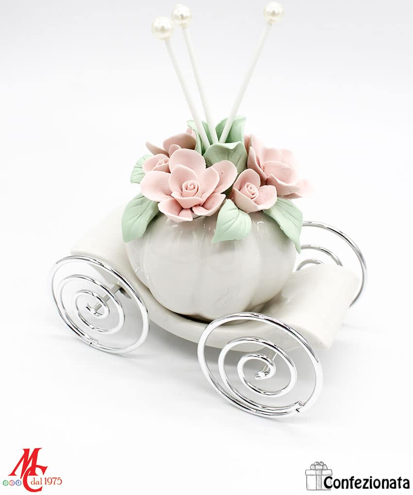 Bomboniera Completa di Confezione – Carrozza Profumatore Fiore Porcellana