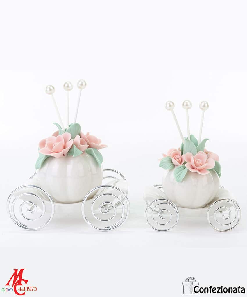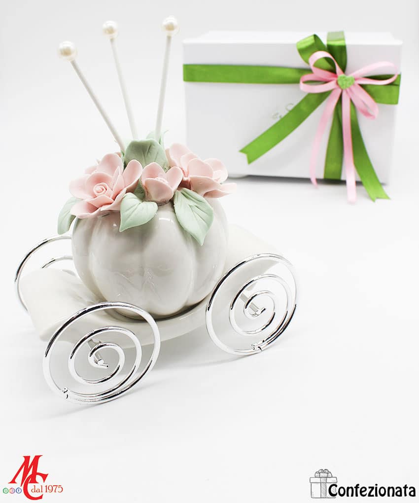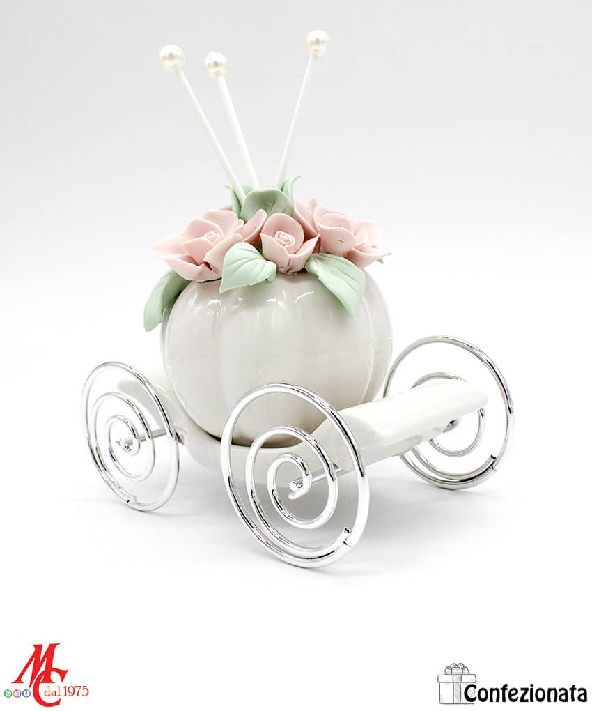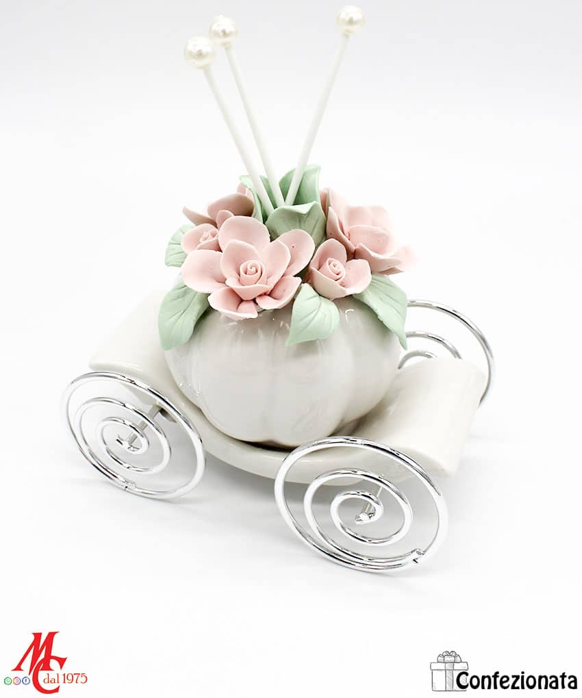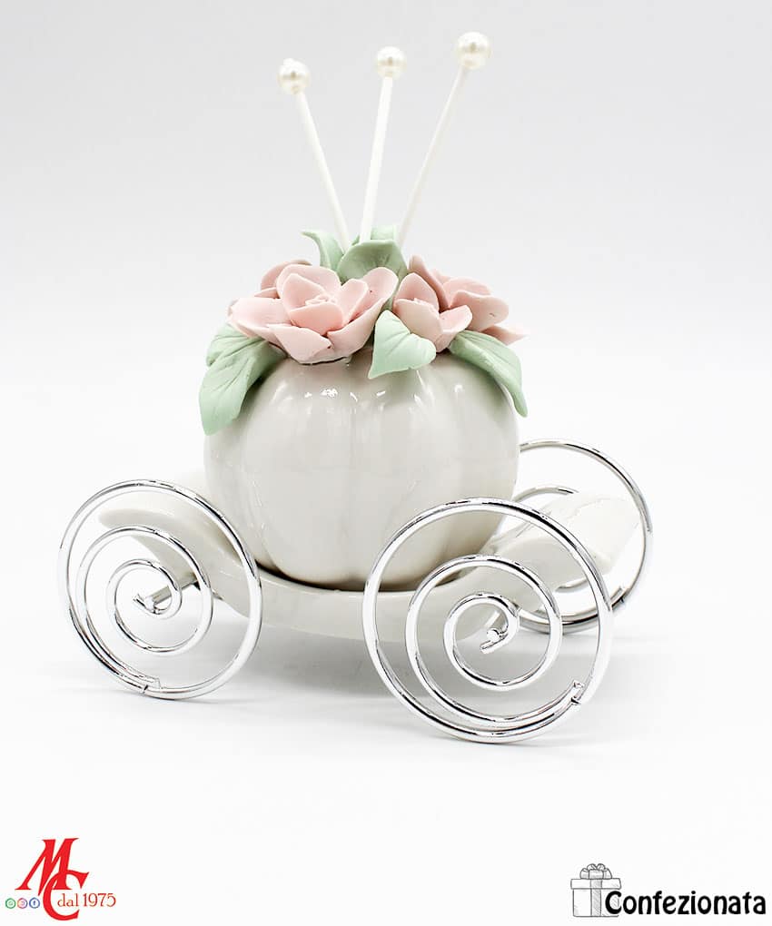 Bomboniera Completa di Confezione – Carrozza Profumatore Fiore Porcellana