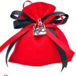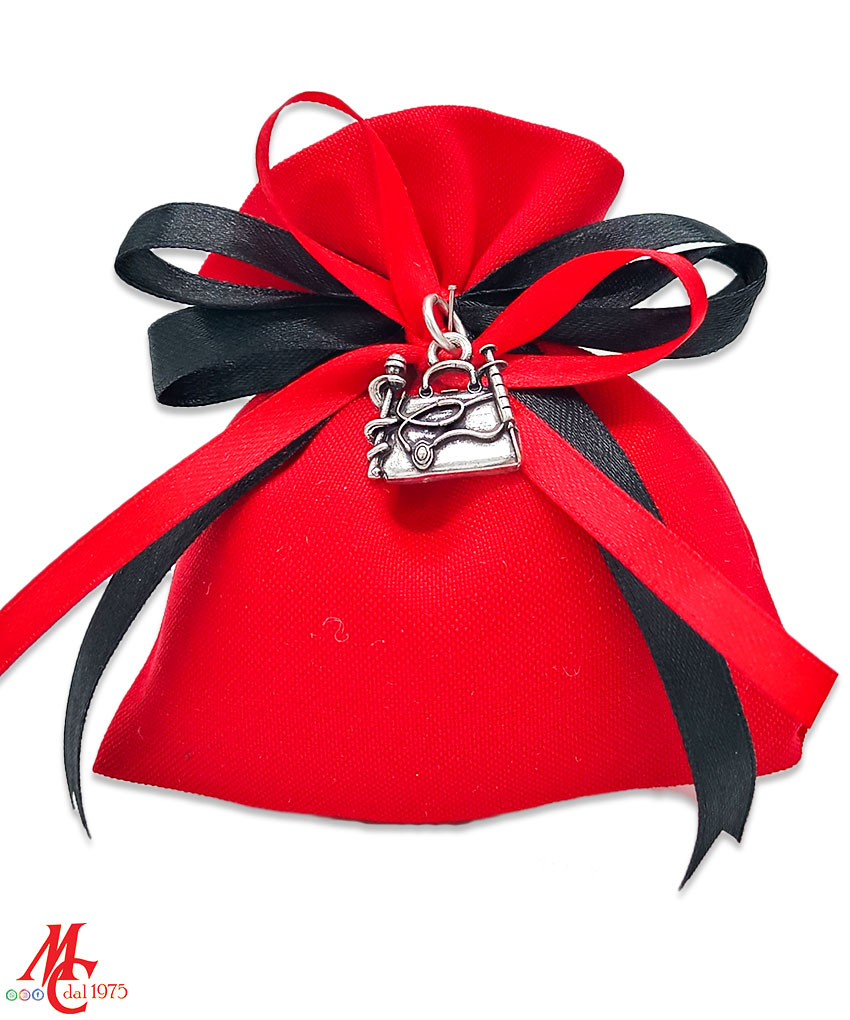 Sacchetto: Rosso in Tessuto con Nastrini doppio Raso Bianchi e Rossi – Solo se si sceglie la voce con confezione