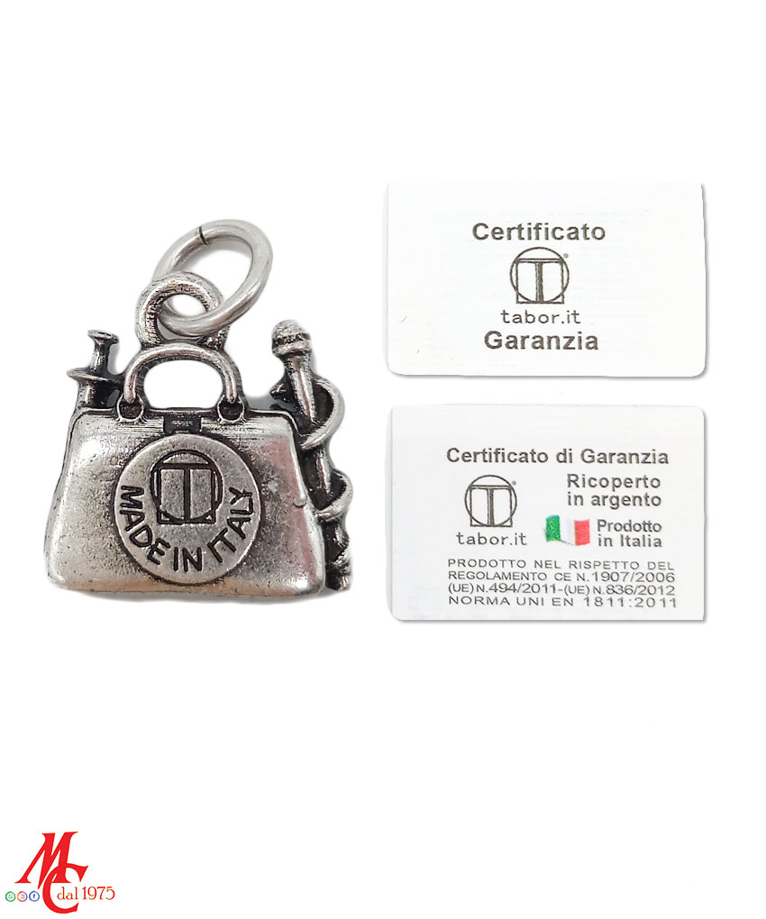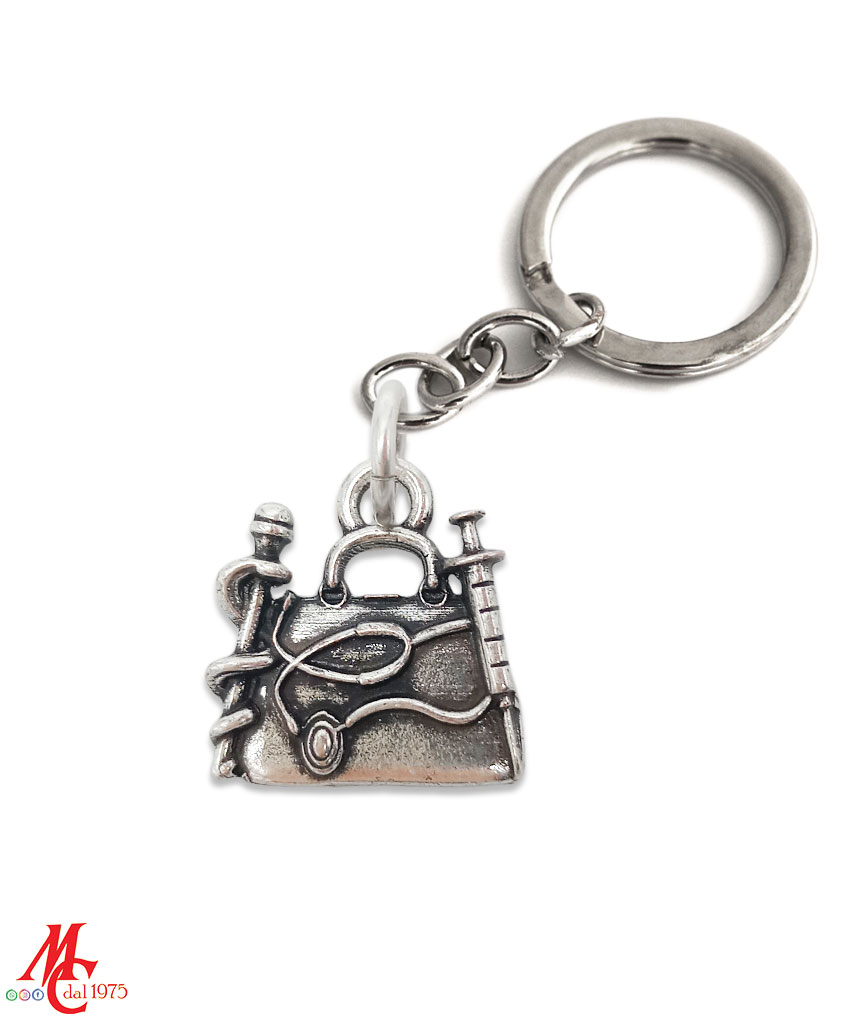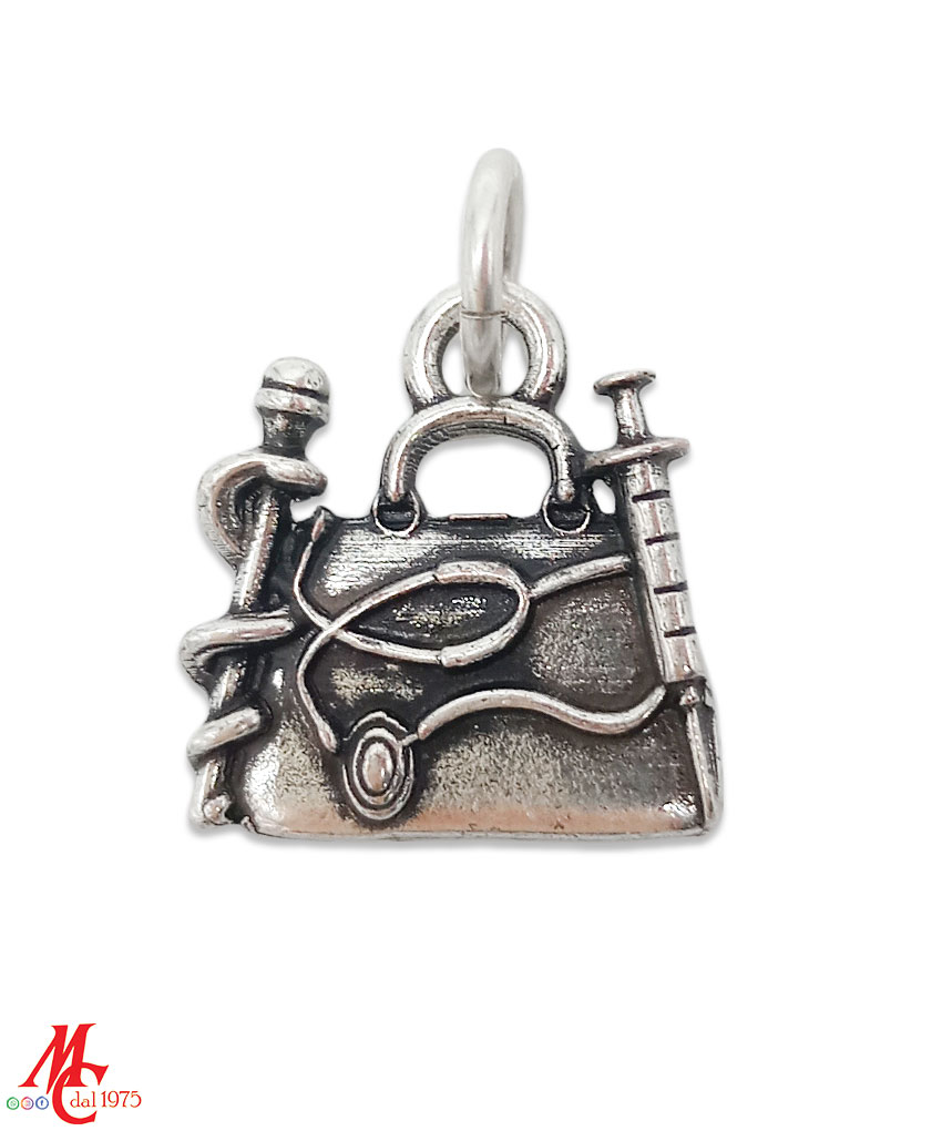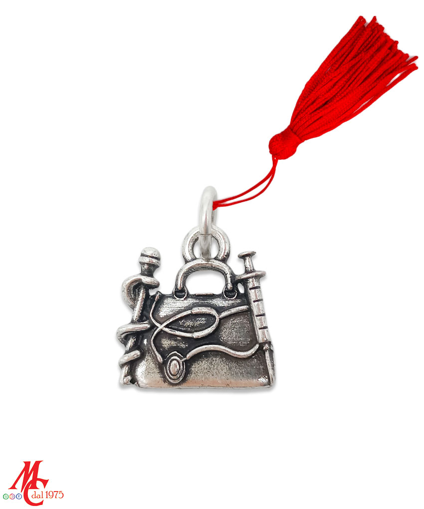 Ciondolo per bomboniera laurea in Medicina con borsa da dottore, bastone di Esculapio e siringa