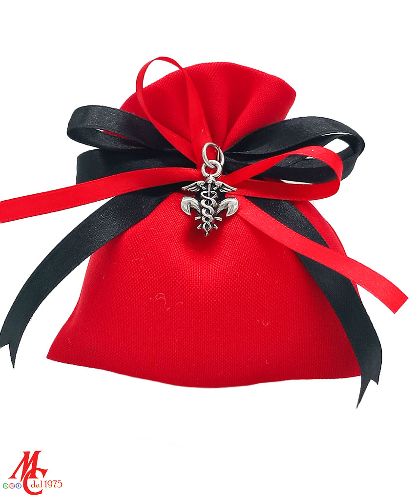 Sacchetto: Rosso in Tessuto con Nastrini doppio Raso Bianchi e Rossi – Solo se si sceglie la voce con confezione
