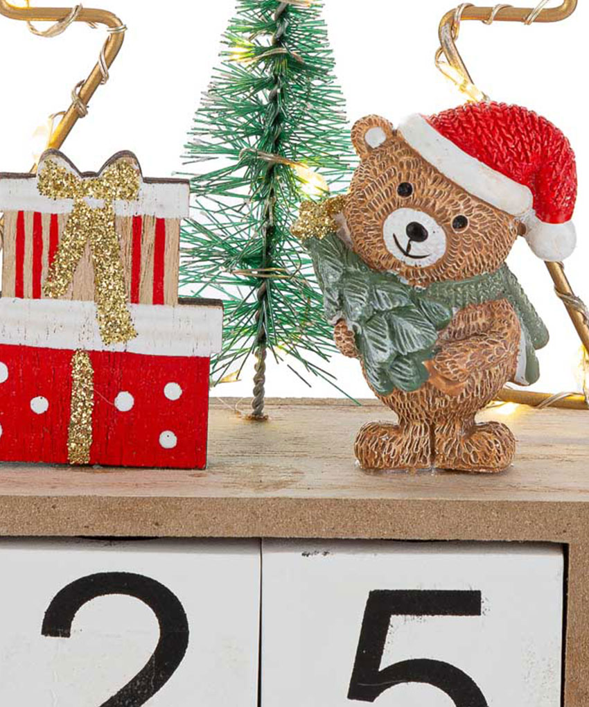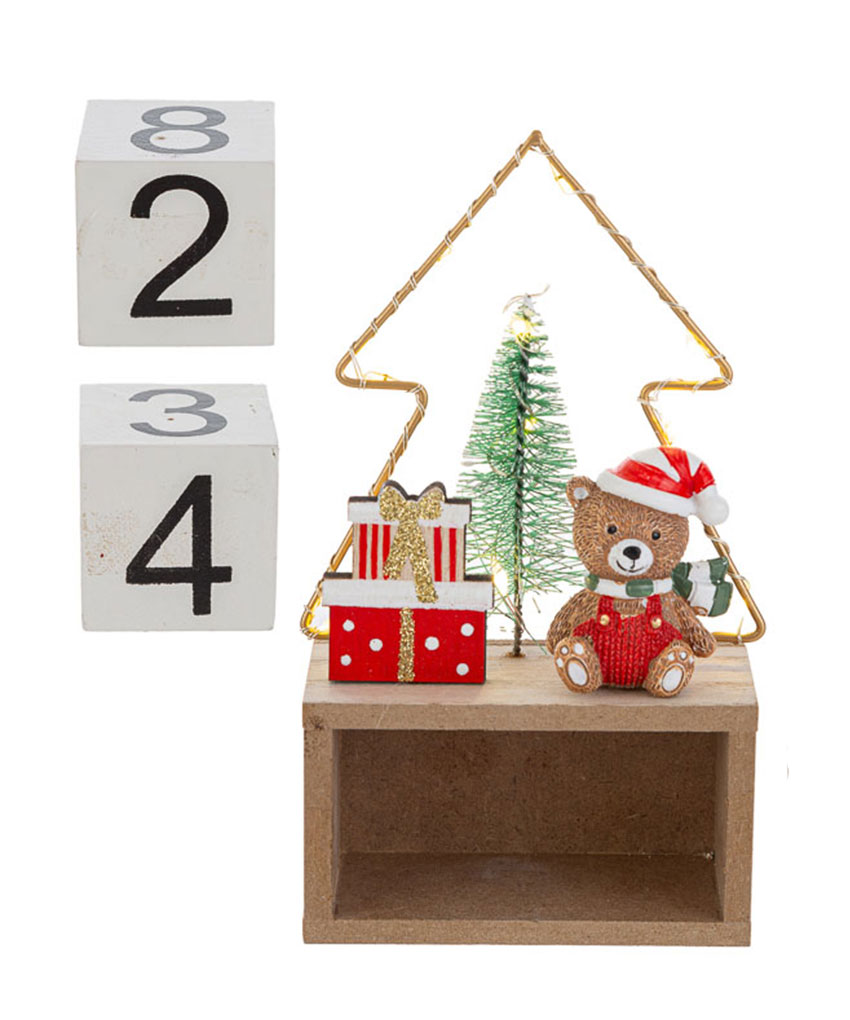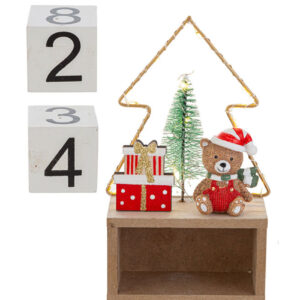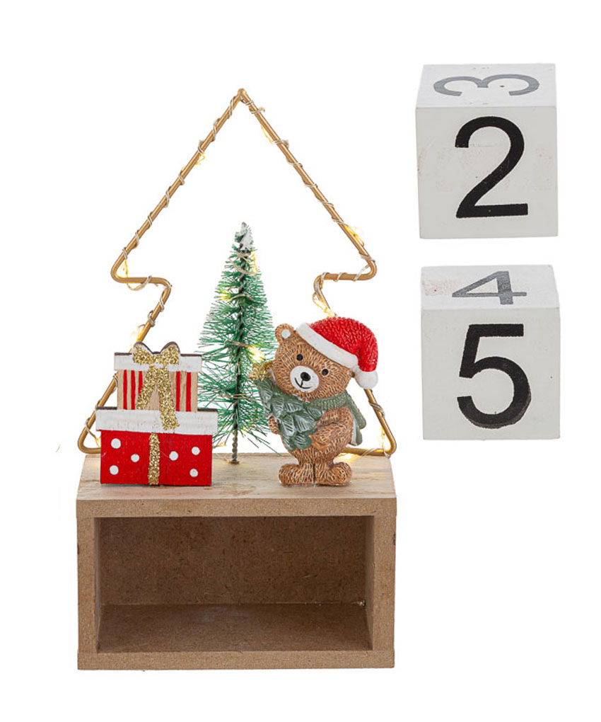 Il Datario Orsetto Natalizio con LED unisce funzionalità e decorazione in un’unica, dolcissima creazione. Realizzato in resina con dettagli curati, presenta un tenero orsetto in versione natalizia che illumina la scena grazie a una soffusa luce LED, rendendo questo datario un elemento decorativo unico e festoso.