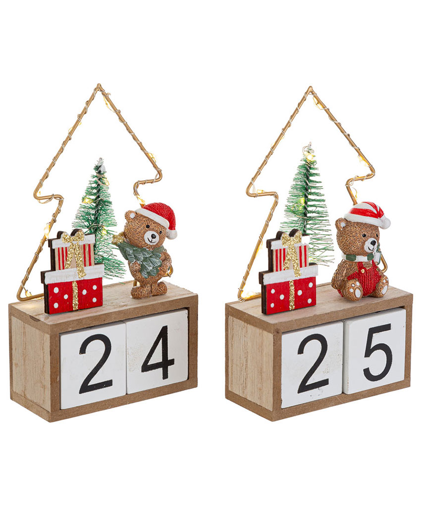 Datario Orsetto Natalizio con Luce LED – 2 Assortimenti 8,5×4,5×15 cm
