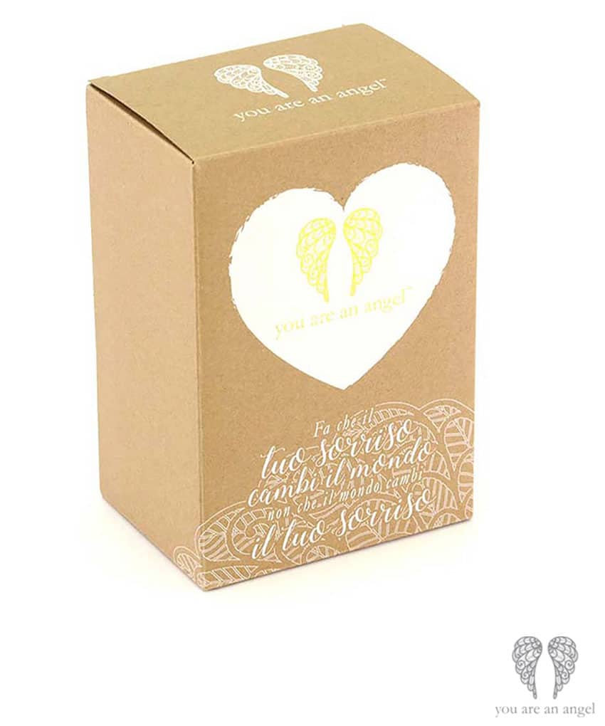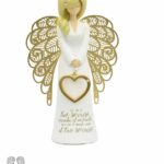 Le figure di You Are An Angel sono il regalo perfetto per far sapere a una persona cara quanto siano speciali e importanti per noi. Questo angelo ha ali metalliche rivestite di polvere bianca, un ciondolo metallico a forma di cuore e la sensazionale frase “Fa che il tuo sorriso cambi il mondo non che il mondo cambi il tuo sorriso” è incisa sulla sua veste. Questo angelo è avvolto in una bellissima confezione regalo con dettagli in foglia oro. Perfetto come regalo e decorazione della casa.