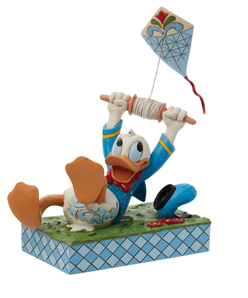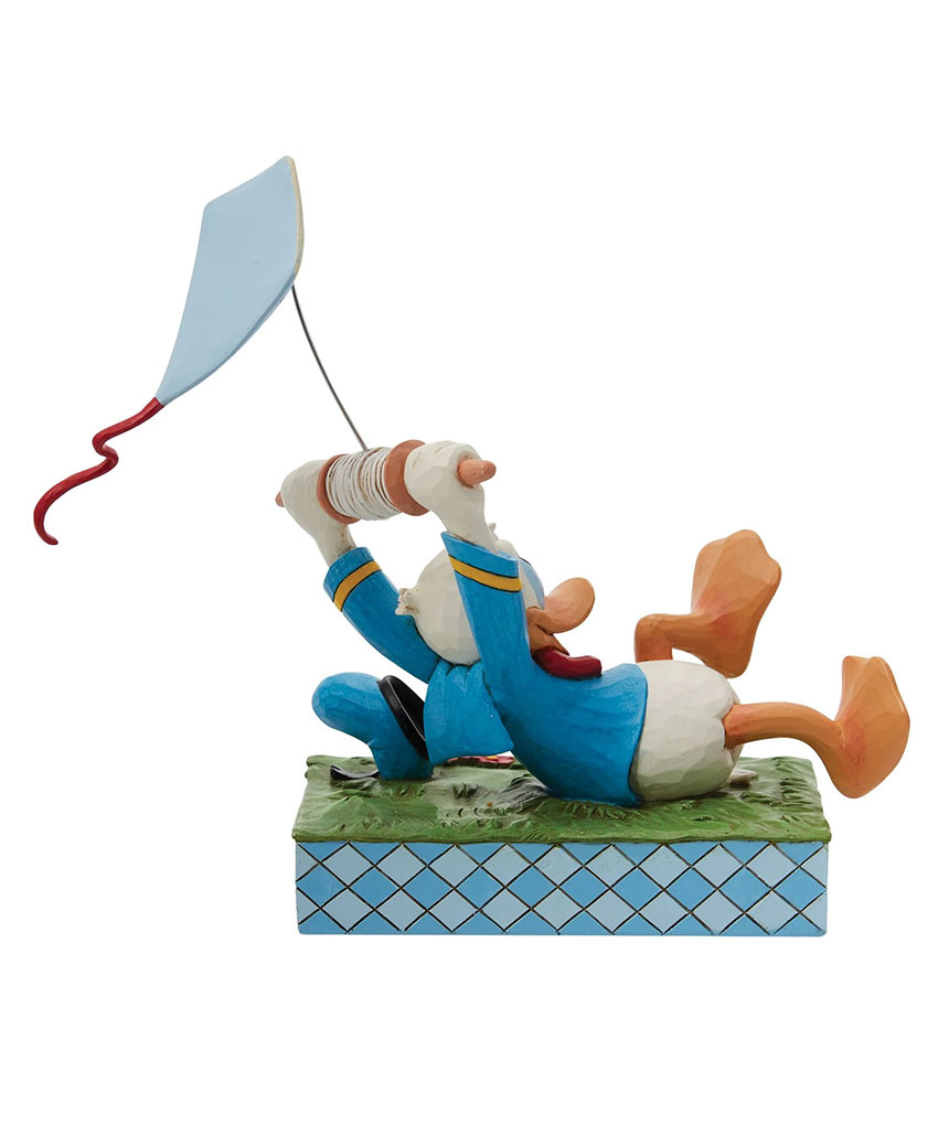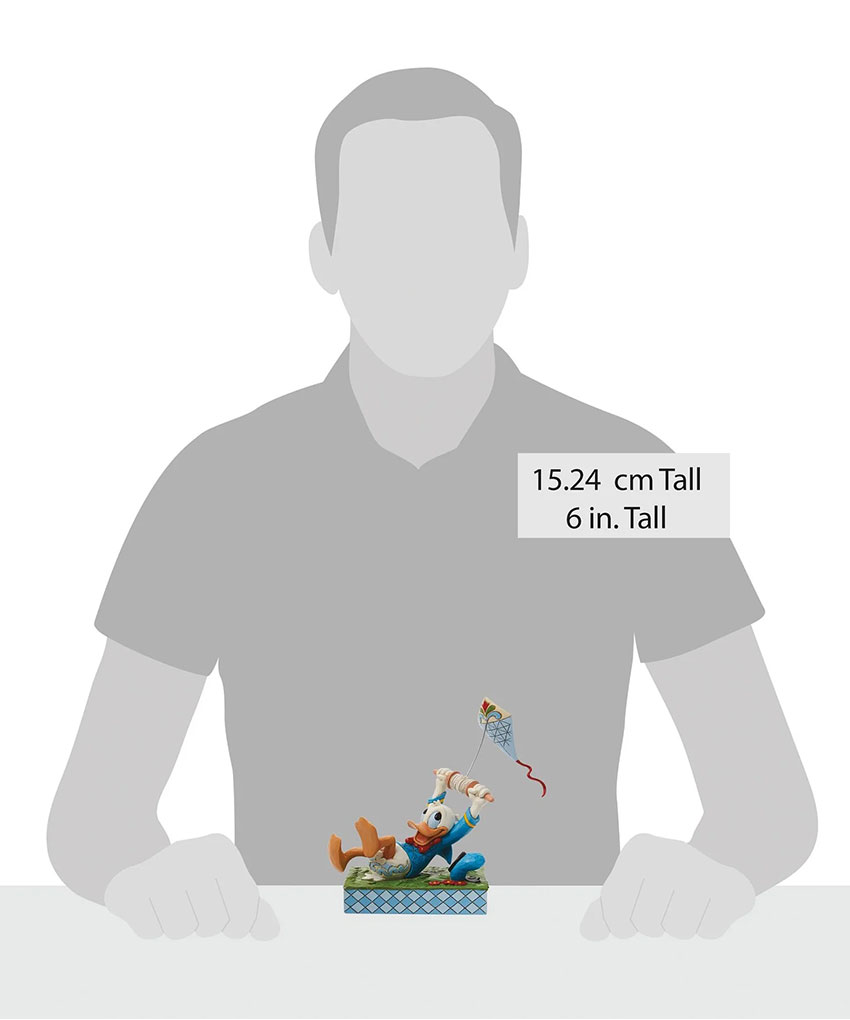 Raffigurazione simpatica di Paperino mentre affronta una giornata ventosa con il suo colorato aquilone. Il design presenta dettagli intagliati e motivi ispirati al patchwork e rosemaling tipici dello stile Jim Shore.Materiale di alta qualità