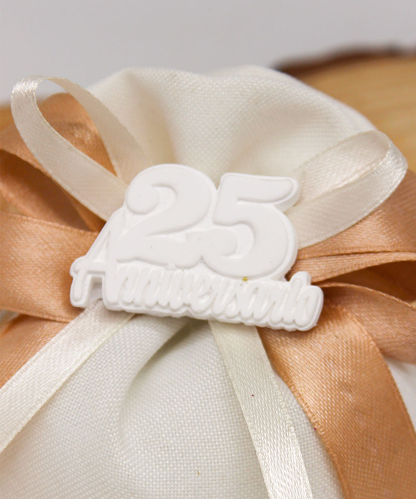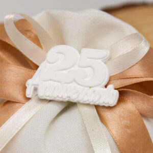 Un piccolo dettaglio capace di racchiudere eleganza e significato. Il gessetto 25° Anniversario misura 4×2,5 cm ed è realizzato con cura in resina di qualità, perfetto per impreziosire confezioni o come bomboniera simbolica.