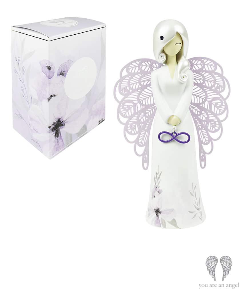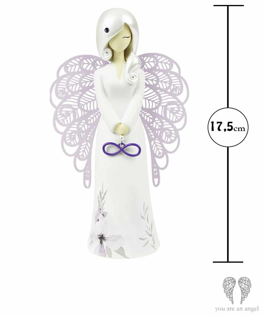 Le figure di You Are An Angel sono il regalo perfetto per far sapere a una persona cara quanto siano speciali e importanti per noi. Questo angelo ha ali metalliche, un charm infinito segno metallico su cui. Ogni angelo è avvolto in una bellissima confezione regalo disegnata con dettagli in foglia oro. Perfetto come regalo e decorazione della casa.