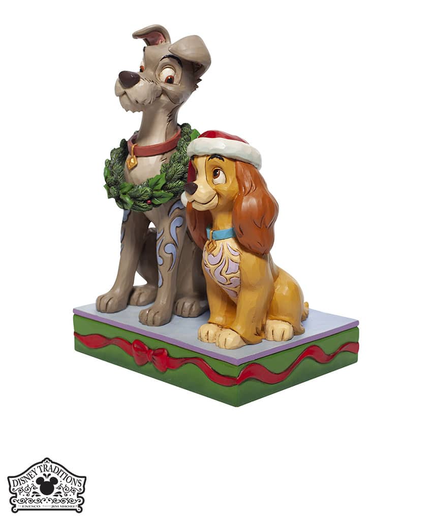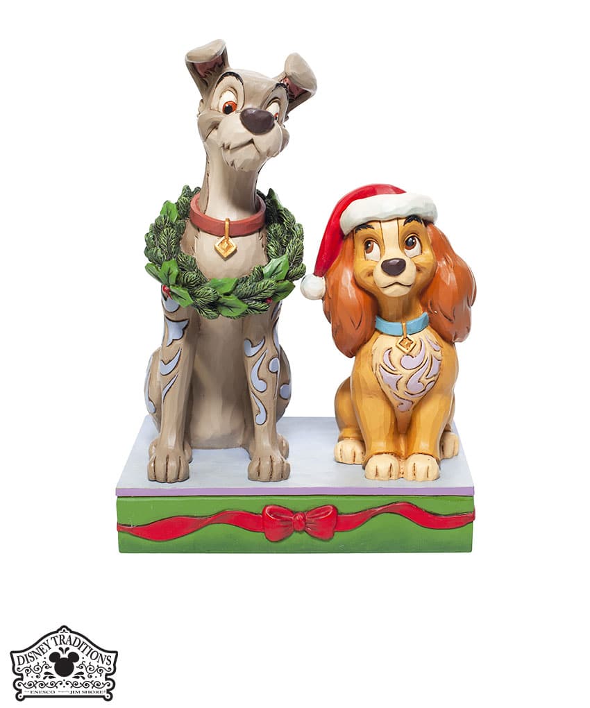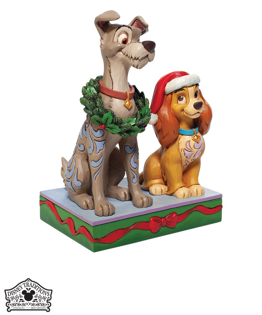Lilli e il Vagabondo assumono una posa festosa in questa affascinante statuetta. Lilli indossa un cappello di Babbo Natale in modo sorprendente, mentre Tramp indossa con orgoglio una corona. La coppia romantica rende la stagione più dolce. Queste figurine non sono giocattoli per bambini. Destinato solo agli adulti.