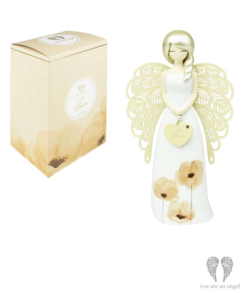 Le figure di You Are An Angel sono il regalo perfetto per far sapere a una persona cara quanto siano speciali e importanti per noi. Questo angelo ha ali in metallo argentato, un ciondolo cuore in metallo su cui è inciso il sentimento “Love”. Ogni angelo è avvolto in una bellissima confezione regalo disegnata con dettagli in foglia oro. Perfetto come regalo e decorazione per la casa.