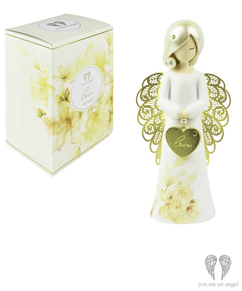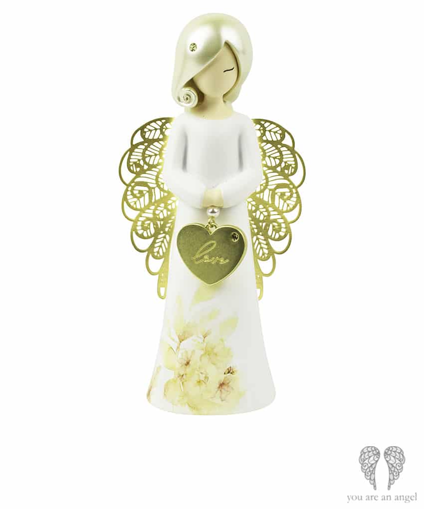 Le figure di You Are An Angel sono il regalo perfetto per far sapere a una persona cara quanto siano speciali e importanti per noi. Questo angelo ha ali di metallo argentato, un ciondolo metallico su cui è incisa la frase “Love”. Ogni angelo è avvolto in una bellissima confezione regalo disegnata con dettagli in foglia oro. Perfetto come regalo e decorazione per la casa.