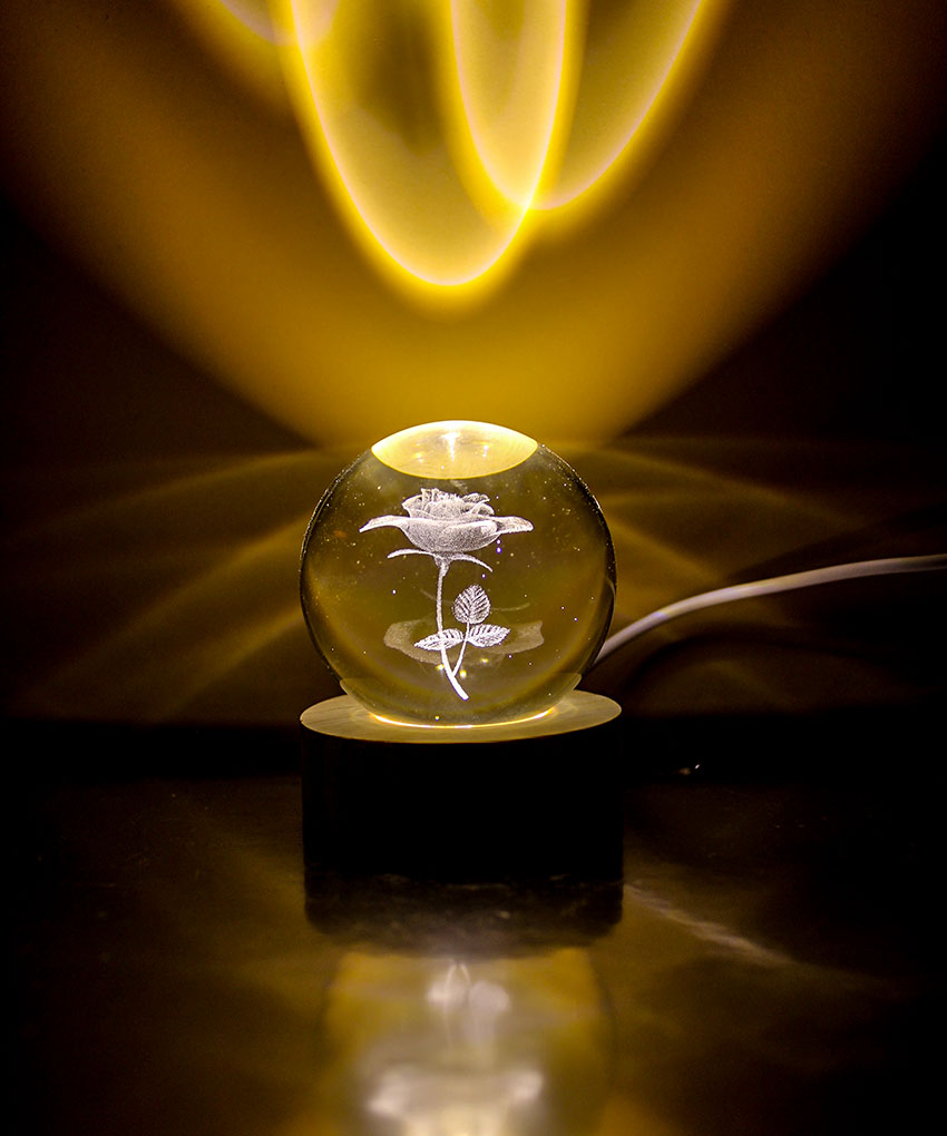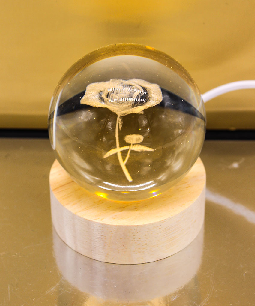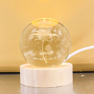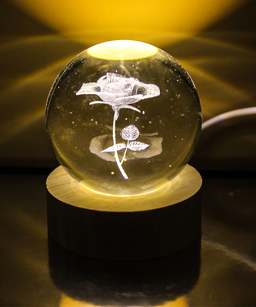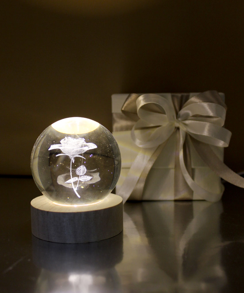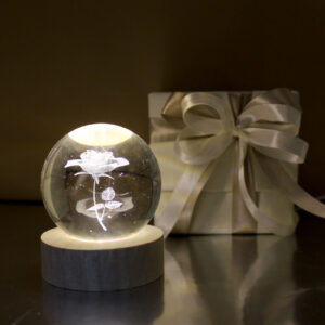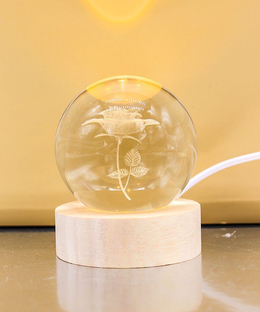 LUCE NOTTURNA SFERA LED ROSA 3D SU BASE LEGNO CON USB DIAM. 6 – Bomboniera Completa di Confezione
