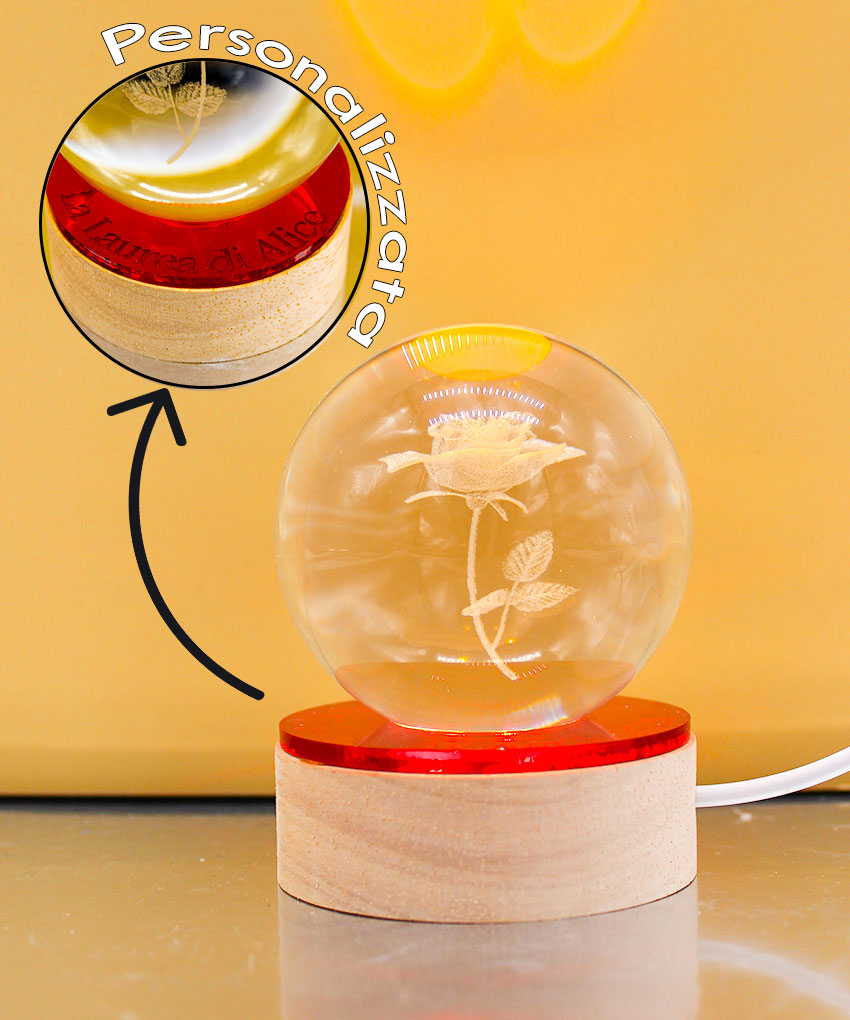 Recensisci per primo “Bomboniera Luce Notturna Sfera LED Rosa 3D su Base Legno”