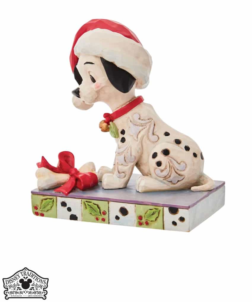 Con centouno fratelli, il periodo natalizio è molto gioioso, festoso e familiare per Lucky. Approfittando dell’inverno a Londra, Lucky assapora un osso indossando un colier adornato di agrifoglio e un cappello natalizio. Progettato dal pluripremiato artista e scultore Jim Shore per il marchio Disney Traditions.