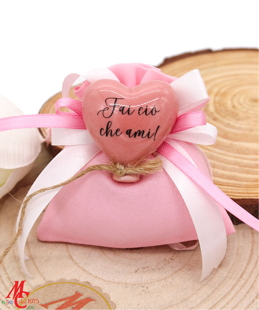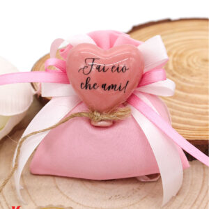 Bomboniera Sacchettino con Magnete Cuore Rosa