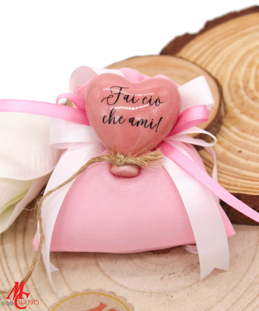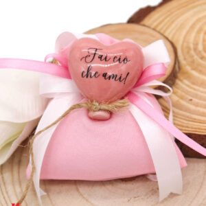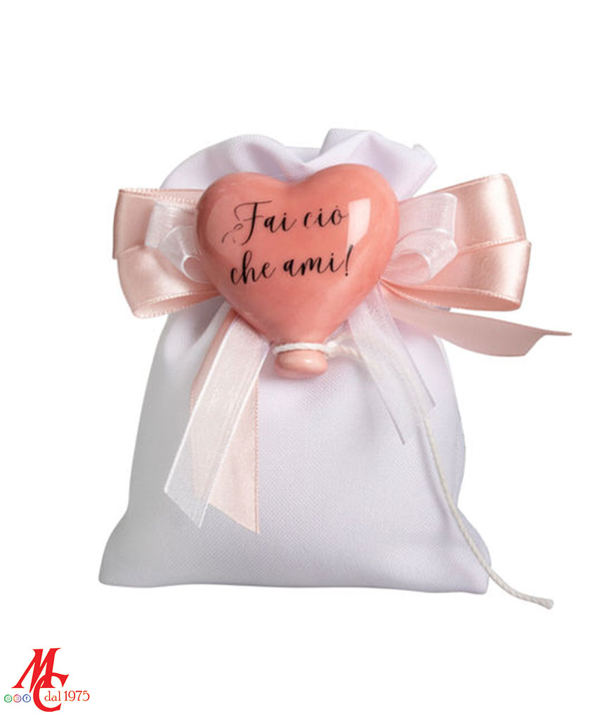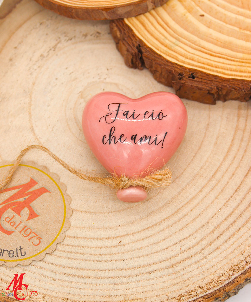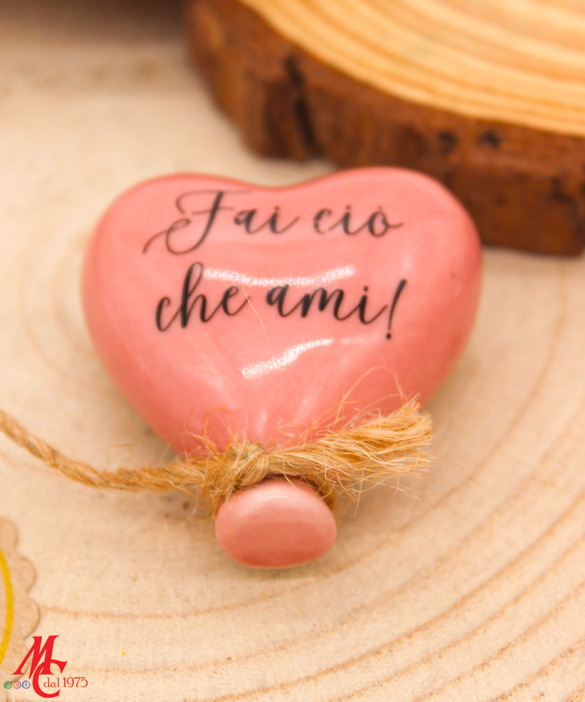 Bomboniera Magnete Palloncino Cuore Rosa in Porcellana – Con Frase “Fai ciò che ami”