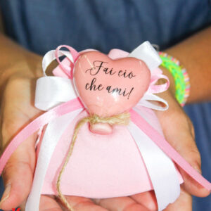 • Confezione inclusa: Sì – sacchettino rosa, nastri e confetti