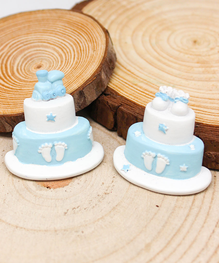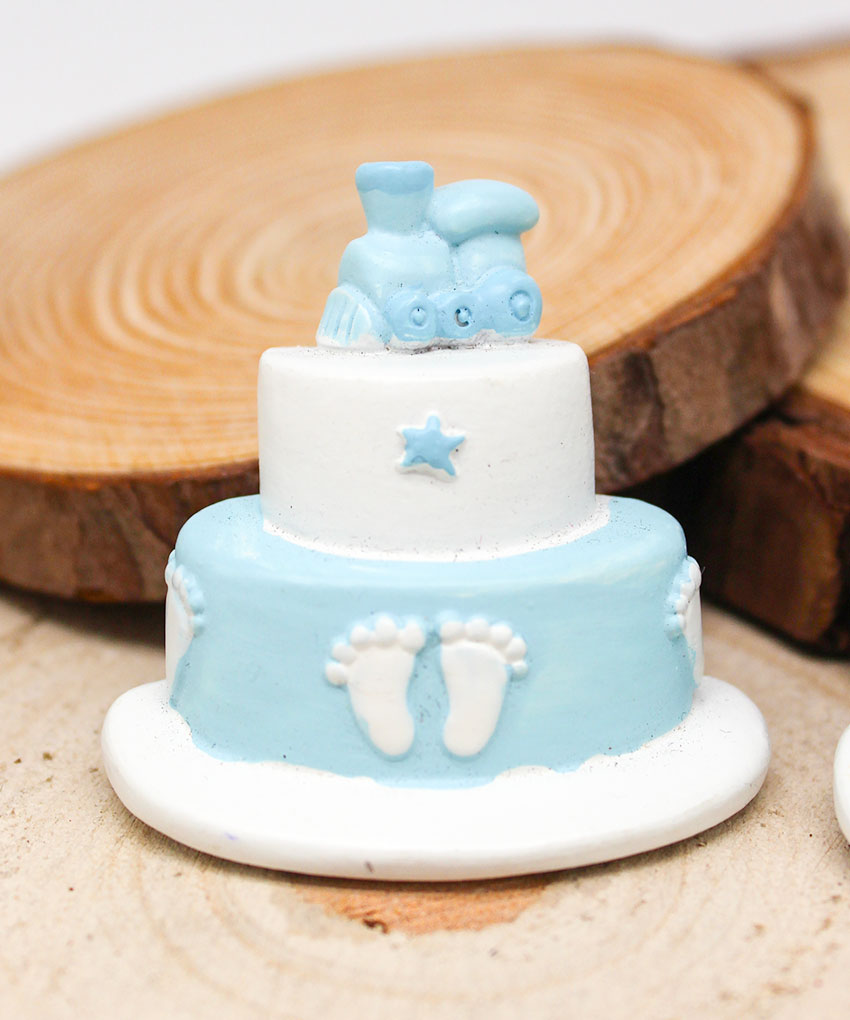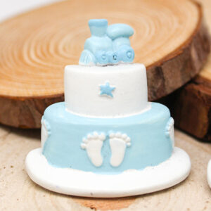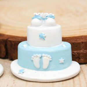 Magnete torta baby celeste da 5 cm, realizzato in resina con dettagli delicati. Perfetto come bomboniera per nascita e battesimo. La confezione non è inclusa nel prezzo e può essere aggiunta nei passaggi successivi all’ordine.