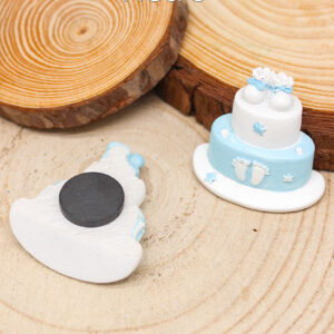 Il magnete torta baby celeste da 5 cm è un’idea dolce e moderna per celebrare una nuova nascita o un battesimo. Realizzato in resina con dettagli curati, unisce tenerezza e praticità, diventando un ricordo speciale per gli ospiti.