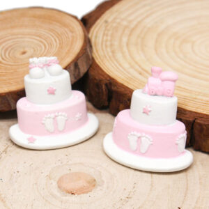 Magnete torta baby Rosa da 5 cm, realizzato in resina con dettagli delicati. Perfetto come bomboniera per nascita e battesimo. La confezione non è inclusa nel prezzo e può essere aggiunta nei passaggi successivi all’ordine.