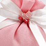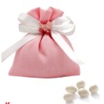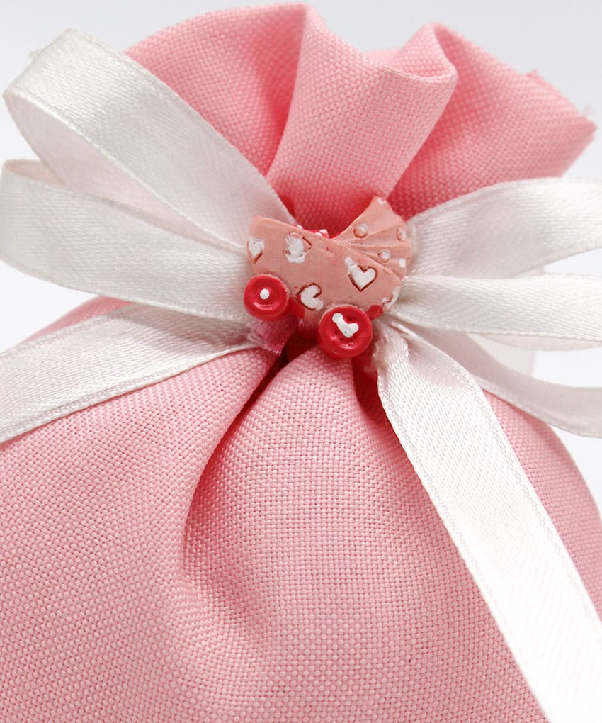 Sacchetto colore Rosa in Tessuto con Nastrini doppio Raso Bianco