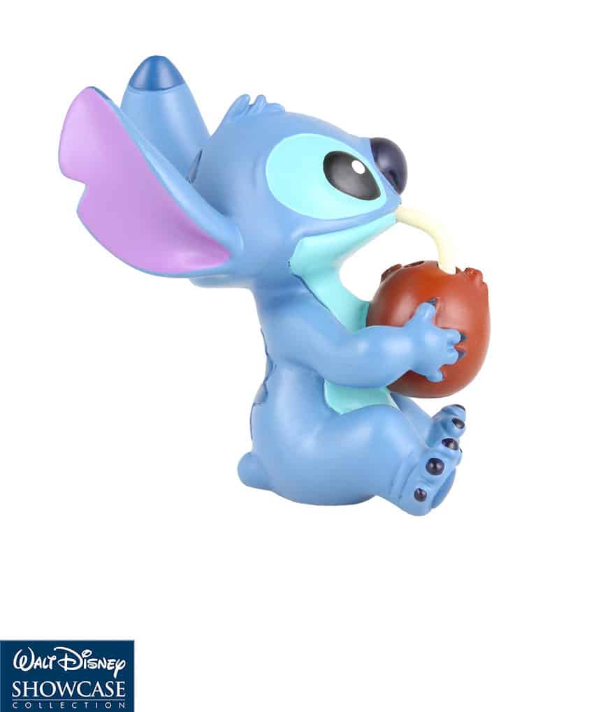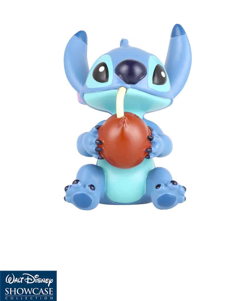 Mini figura di Stitch che sorseggia succo di cocco attraverso la paglia. Ogni figura della collezione Disney Showcase è realizzata in resina e dipinta a mano, fornita in una confezione regalo.