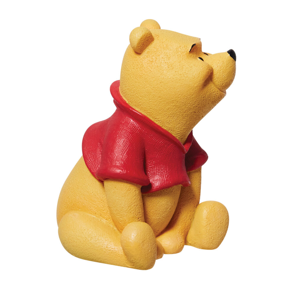 Un dolce e adorabile Winnie the Pooh in versione mini, parte della collezione Disney Showcase. Seduto con la sua classica maglietta rossa, Pooh è realizzato in resina stone e dipinto a mano con finitura di qualità, catturando tutto il suo fascino tenero e nostalgico.