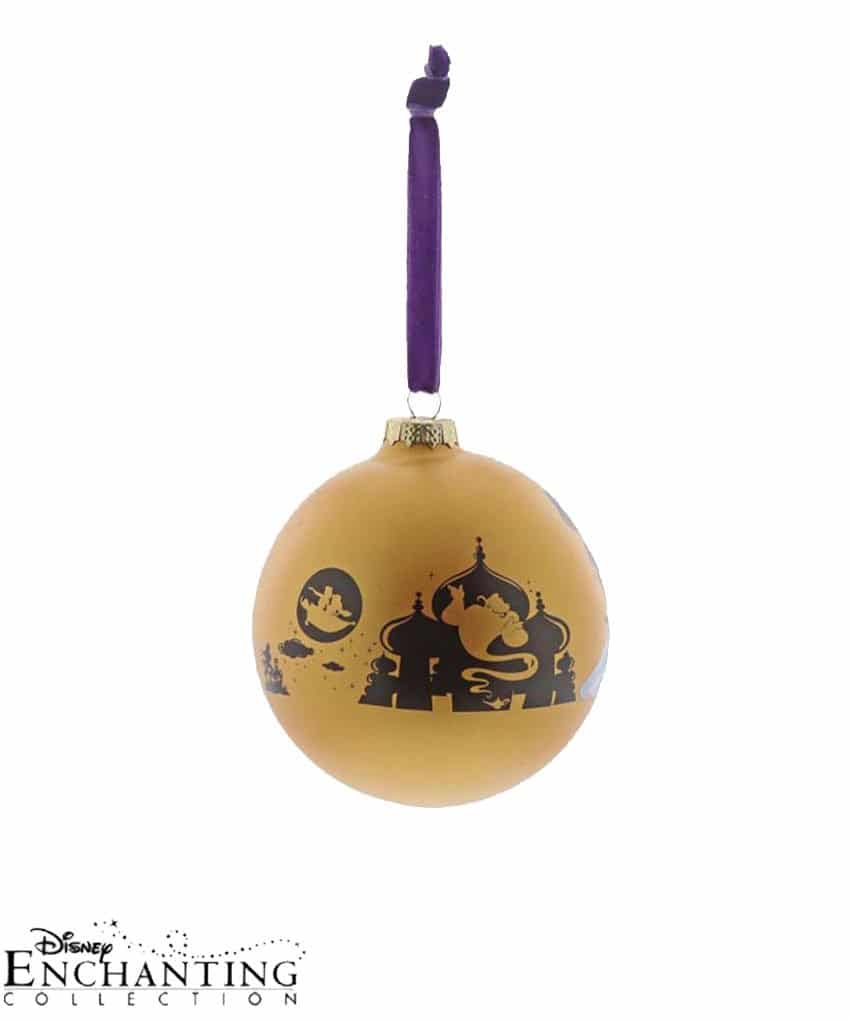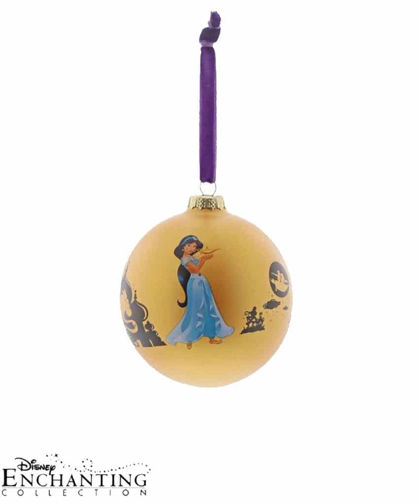 Jasmine di Disney Aladdin si trova con il Genio, Abu e il tappeto magico in questa bellissima pallina di vetro. Un prezioso ricordo da regalare ad un amico, o per illuminare le nostre casa.