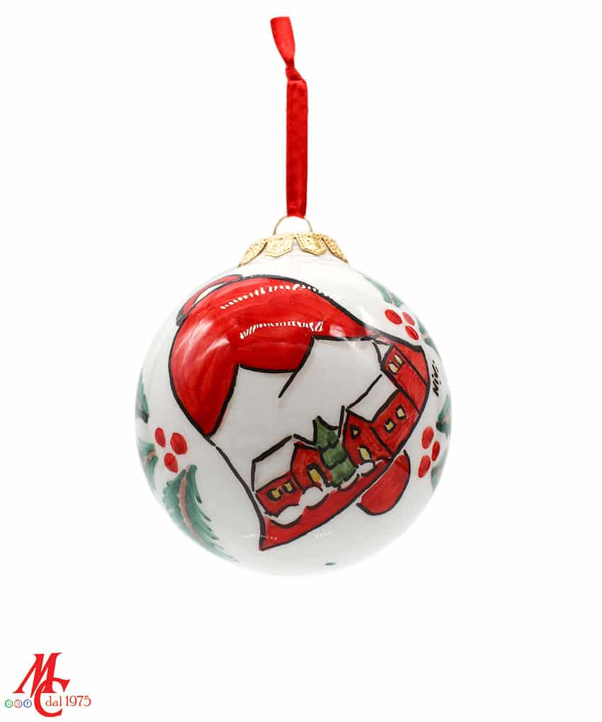 Pallina di Natale – Ceramica dipinta a Mano – Campana con Paesaggio Natalizio