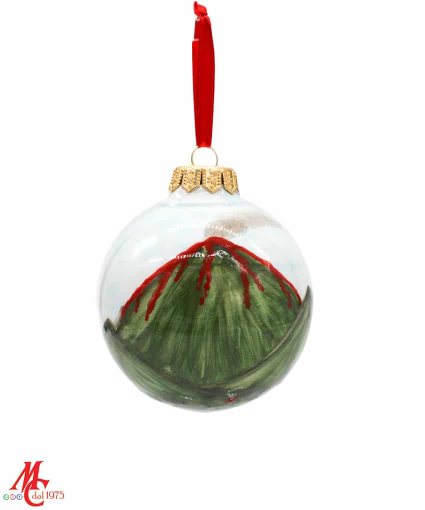 Pallina di Natale – Ceramica dipinta a Mano – Decoro Etna con Limoni