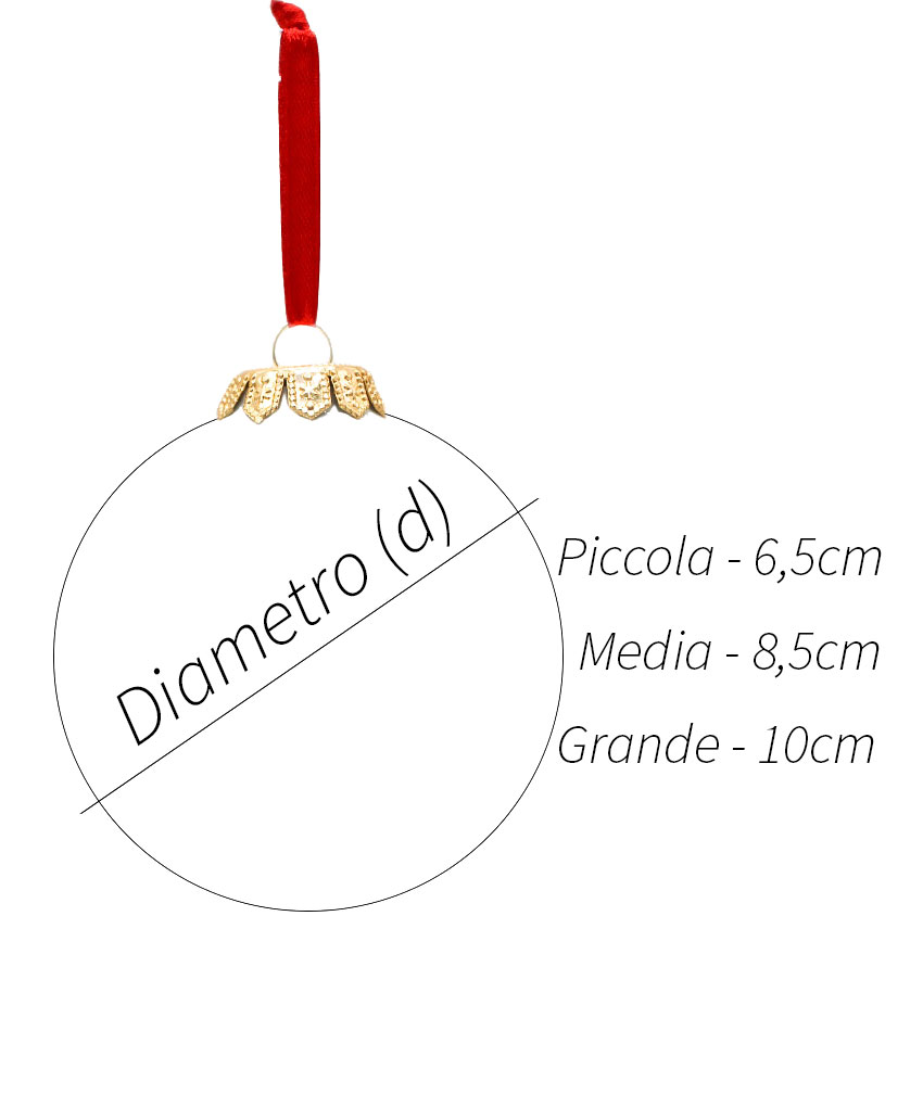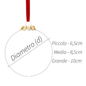 Disponibile in tre misure, è ideale per decorare l’albero di Natale o per essere regalata come bomboniera o oggetto da collezione. Su richiesta può essere personalizzata con un nome o una data, trasformandola in un ricordo speciale e unico.