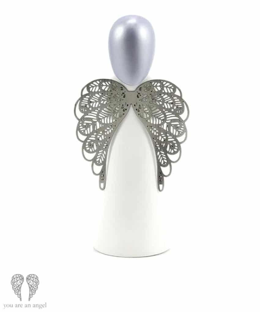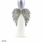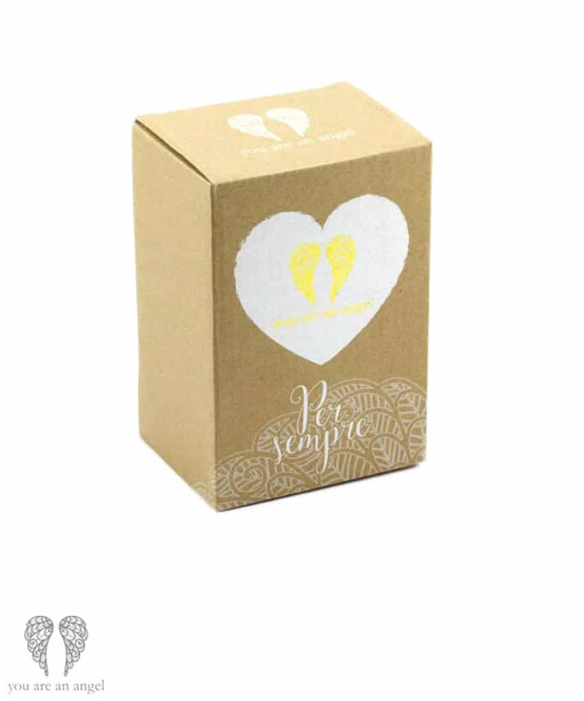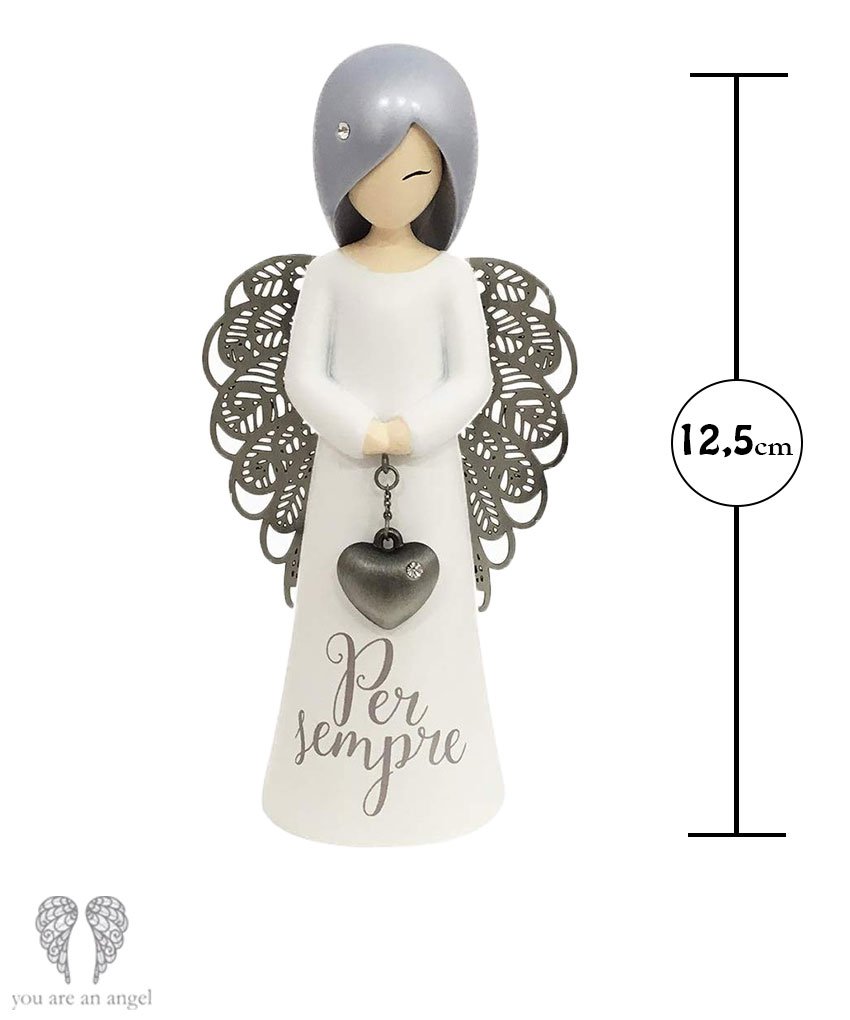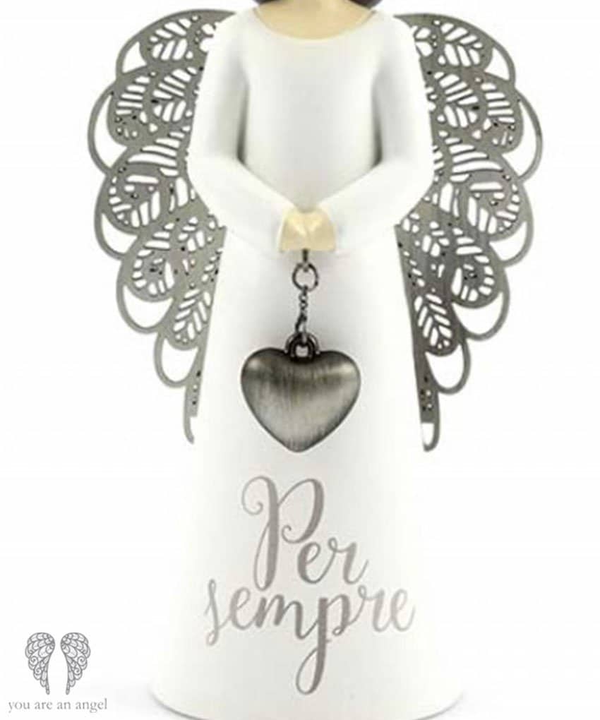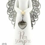 Angelo stilizzato con Ali e Cuoricino in metallo, con inciso alla base “Per Sempre” , applicazione di strass tra i capelli e nel Cuoricino