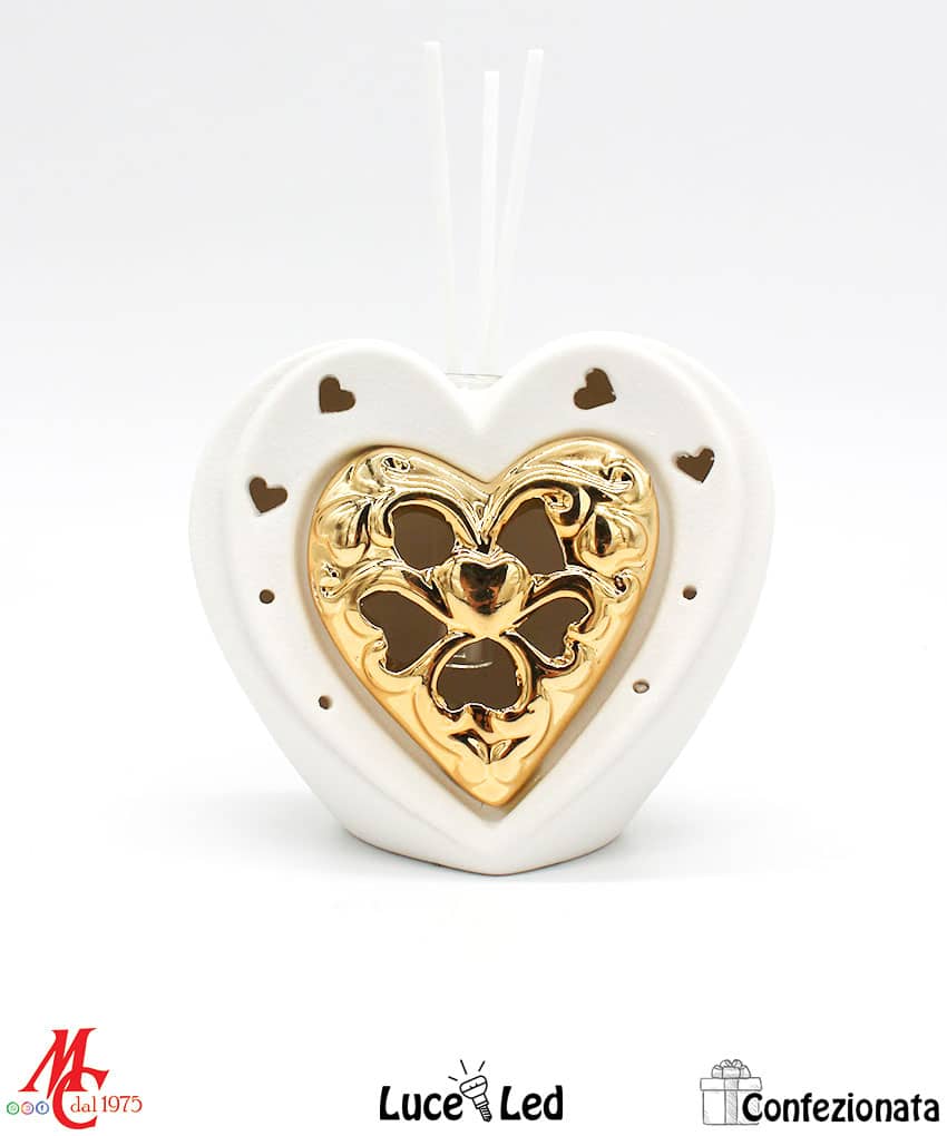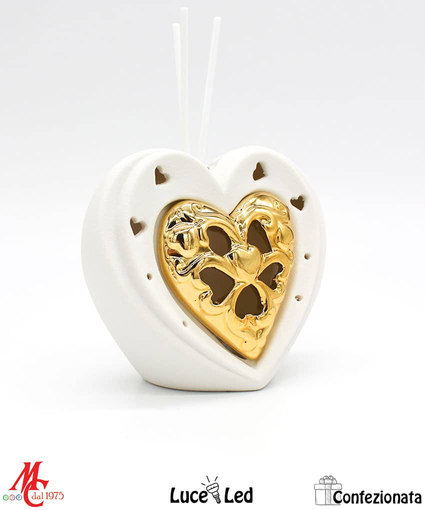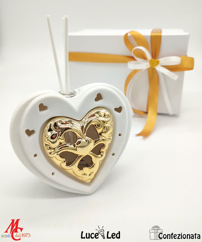 Bomboniera Completa di Confezione – Profumatore Cuore Led – Bianco e Oro